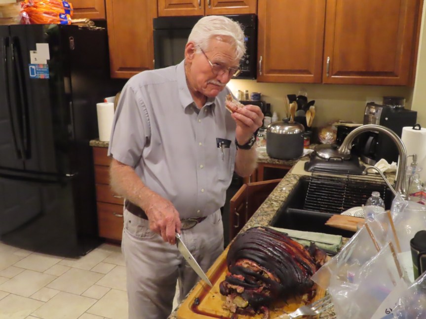 We moved back over to my Dad’s little 30 amp pad on the side of his house and had a wonderful Christmas Eve with all of the family and friends around two big tables filling the length of the family room. Seventeen in all, getting their fill of a traditional Danish pork roast, red cabbage and glazed potato dinner.