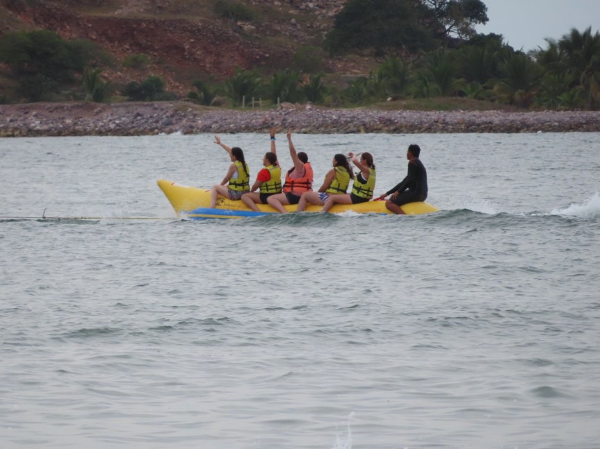 Another pulmonia and ferry home then the beach walk passing the tourist shacks to get back to the RV. Cali wanted out and I was heated up from my commute, so it was time for our afternoon swim. After that, I chopped up my ingredients, squeezed my bagful of limes and set my ceviche in the fridge to do its thing. I talked to the New Brunswick couple, Randy and Beth, that I’d met in Celestino. We sat out under their awning chatting until the evening mosquitoes called a halt to any further social interaction. I tended to the hound then sat down to a plate of ceviche tostadas while catching a couple of episodes of Seinfeld.