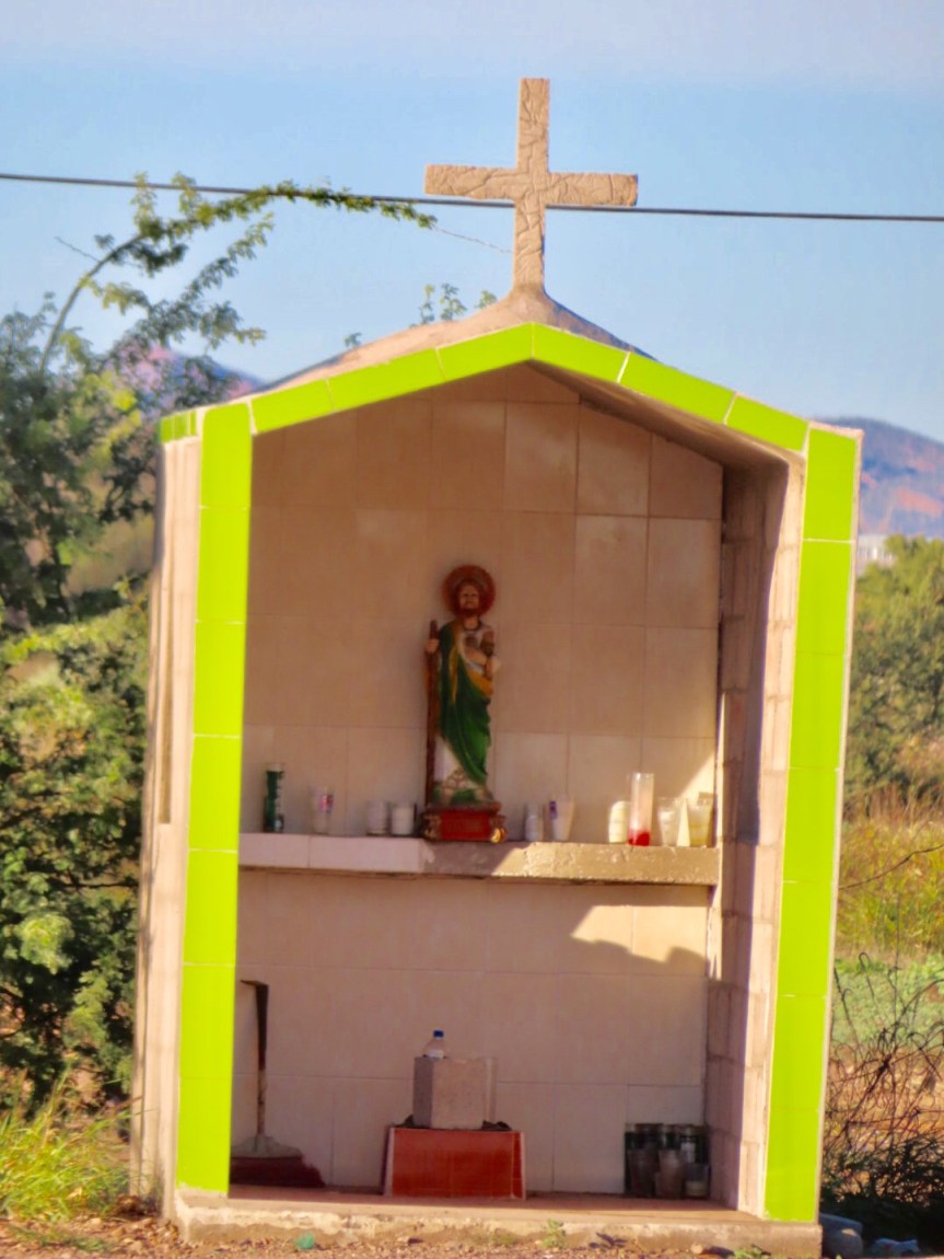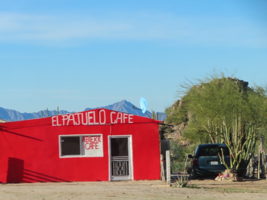 At San Emeterio, there was a couple finishing up before me at the car permit window then I was next. Cool, I thought, a quick in and out again. Not so fast, gringo. The clerk wanted photocopies of my passport, driver’s license, registration and the tourist card I just picked up in Lukeville. I had copies of the others but not the recent acquisition. Do they have a copy machine in this giant empty facility? You guessed correctly if you said no. The customs center is like a mall with multiple rooms off of the sides and some X-ray machines like at the airport to scan bus riding people’s luggage. There are four people total working in the entire building; my guy at the permit window, a disinterested lady at the customs desk across the way, a Santander bank window and one army guy with a machine gun at the far end of the building. I was told to leave the facility and walk across the highway to Cafe Daniela to buy copies, so I marched out of the tall cement walls covered with razor wire along the tops, a wall Trump would be proud to own, and trudged a quarter mile down the dusty highway to Daniela’s where the lady had to leave a patron’s huevos rancheros simmering on the stove to come and make my copies. When I finally hoofed it back across the road, the clerk said he had to go outside to process some guys car and he disappeared for twenty minutes leaving me milling about the ghost town of a customs center listening to the angry girl’s phone calls echoing through the halls. Finally, he returned and before long I was out the door and rolling towards Caborca through the Sonoran countryside.