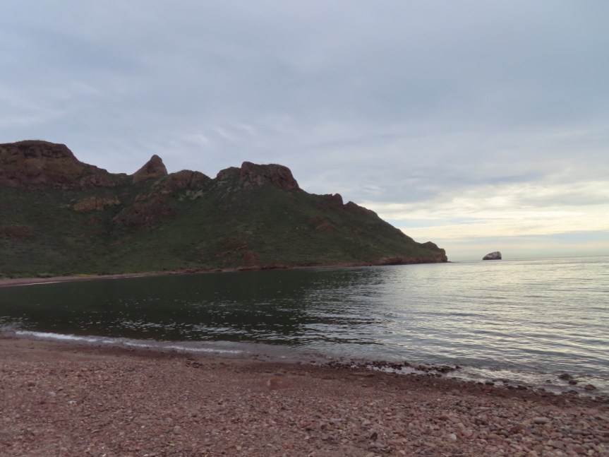 I was hoping to find a trail that would lead up to one of the rocky hills behind the hotel to get a view over the bay so I put on some shoes and started hiking through the upscale neighborhood behind Hotel Cortez in the direction of the rugged peaks. The gardener told me there was a hidden beach at the far side of the point if I went far enough. A resident in the neighborhood pointed me towards a barbed wire fence that said no trespassing and said to slip around behind the shack on the left. I walked for an hour or so looking for a trail up the hillside but the underbrush never gave way. After a while I reached the beach at the south side of the peninsula. I saw neither hide nor hair of another human being for the entire two hour hike, only stillness and quiet with the call of an occasional bird.