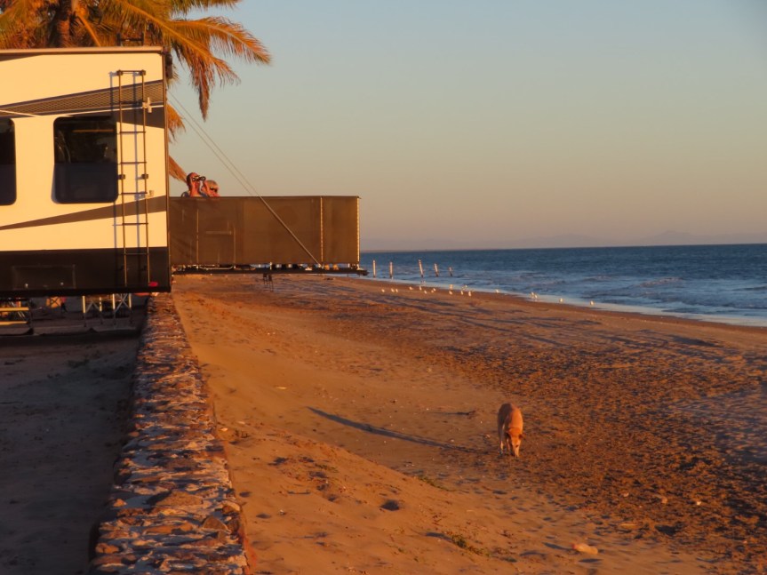 I kept myself busy most of the day here at El Mirador. Once again I was awake before the sun came up, so I took a walk down the beach to the south waiting for the sun breach the horizon and herald in the new day. The row of houses along the beach is an odd collection of total ruins, fancy luxury homes and once nice places falling into disrepair.