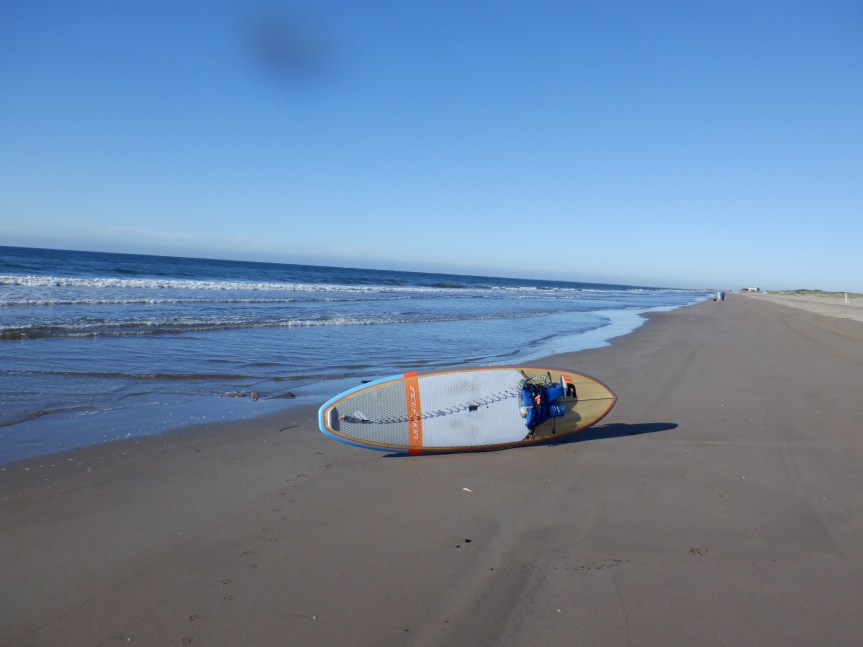 There was some banging noise coming from over near the restaurant at five o’clock in the morning, just enough to wake me up before whatever it was went quiet again. My mind started to overflow with random thoughts and memories. By six, I was able to slip back into a comfortable sleep until some grackles decided to tap dance on my roof vent at eight o’clock. Time to get up. I took Cali out and noticed that the sea was as calm as I’ve seen it here, so I wasted no time getting suited up and out for a paddle. My mind remained active throughout the paddle, calling up old jobs I’ve had, people I’d known that have passed on. One random thought would somehow connect to another totally unrelated random though and so the cascade would go. I just watched the process and kind of marveled really. Some of the things were revealing and a feeling of gratitude began to percolate from somewhere in the obscure recesses of my brain. An interesting interlude on the ruffled surface of the Sea of Cortez.
