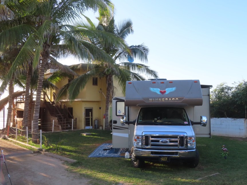 I rolled up to the gate and Luciano came up, let me in then led me down the long driveway to the beach and set me up on a large patch of grass as close to the water as possible. My own lawn! Villa Celeste is a mish mash of cabinas and random spots for RVs to set up. The atmosphere is really casual and as soon as I was parked people were saying hello and welcoming me. There is a mix of young and old with Canadians, Yanks, locals and a French couple with a small child. Feels like a mellow place to unwind for a while.