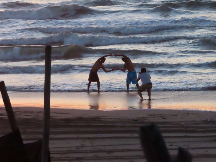 The deck overlooking the ocean is just a few steps away. I put on my trunks and ran out to test the water. Finally getting up there, maybe mid seventies with warmer air temps. Nice! Took a walk down the beach avoiding fast moving sand buggies while one of my neighbors, Mike, was using my tow strap helping some kids get their truck unstuck from the sand. Sunday afternoon at a Mexican beach!