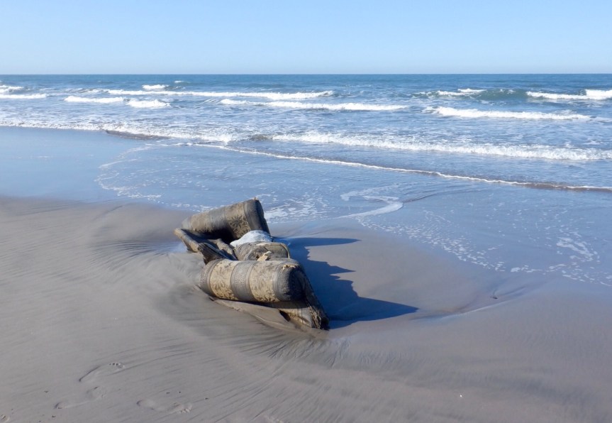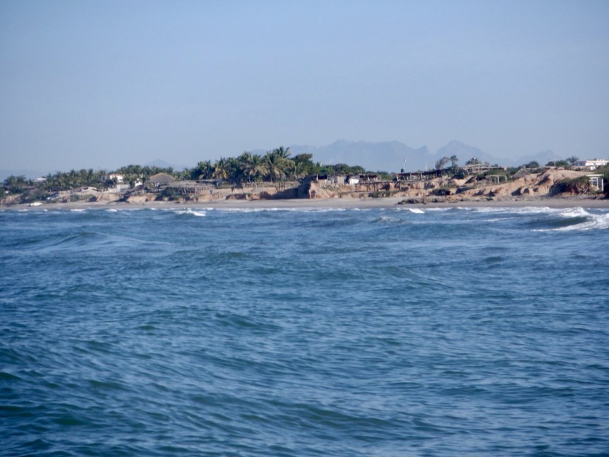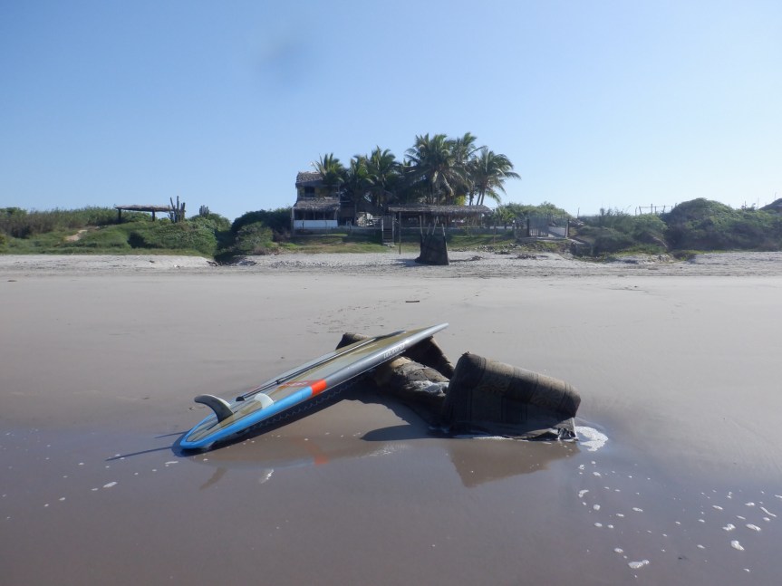 I took the paddle board out to survey the coastline to the north. The wind here has been ever present and the water was a little choppy making it hard to get around. When I was walking out the gate, Luciano and I spotted a large piece of jetsam on the beach. At first I thought it was rocks but upon closer inspection it was a full sized sofa that had washed up on the beach. You never know what you might find after a high tide in Mexico.
