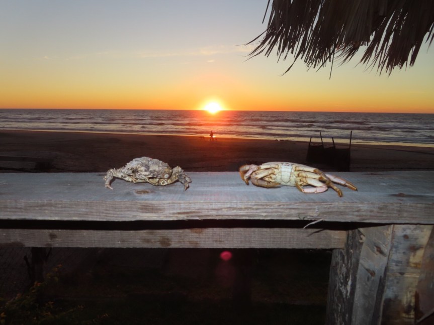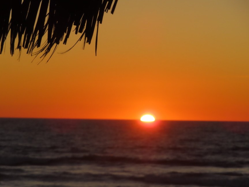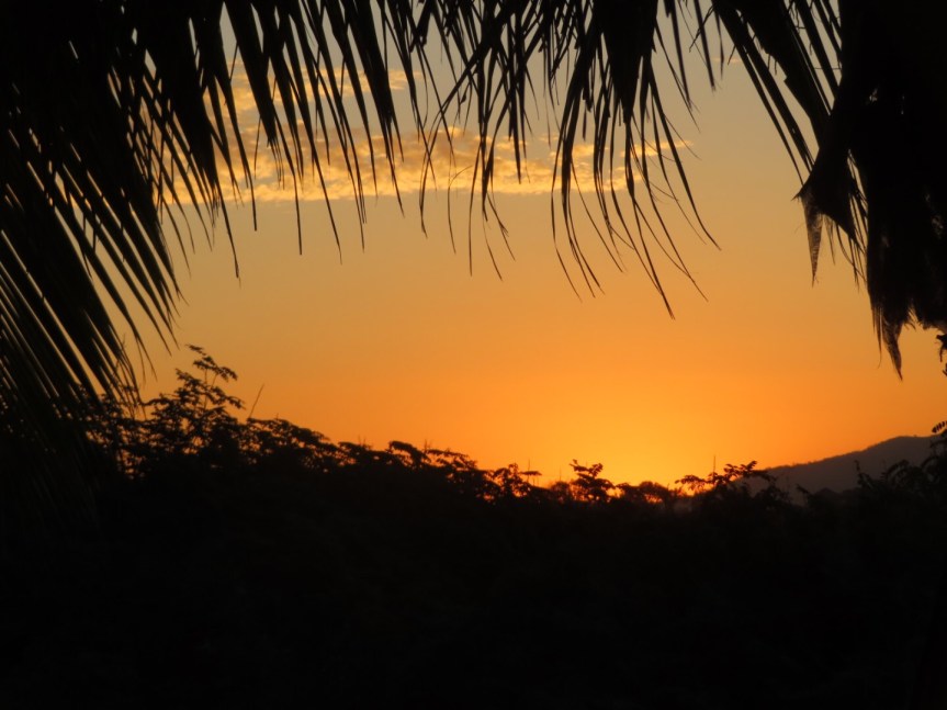 Had a little rest inside with Cali, dozing for a minute or three until I saw the sun dipping low and went out to join a few other sunset watchers on the patio. They were all jazzed from their excursion today. The guys all had cool looking t-shirts from the distillery and everybody recounted their adventures while we all witnessed the finish of another day in the fishing center of Celestino.