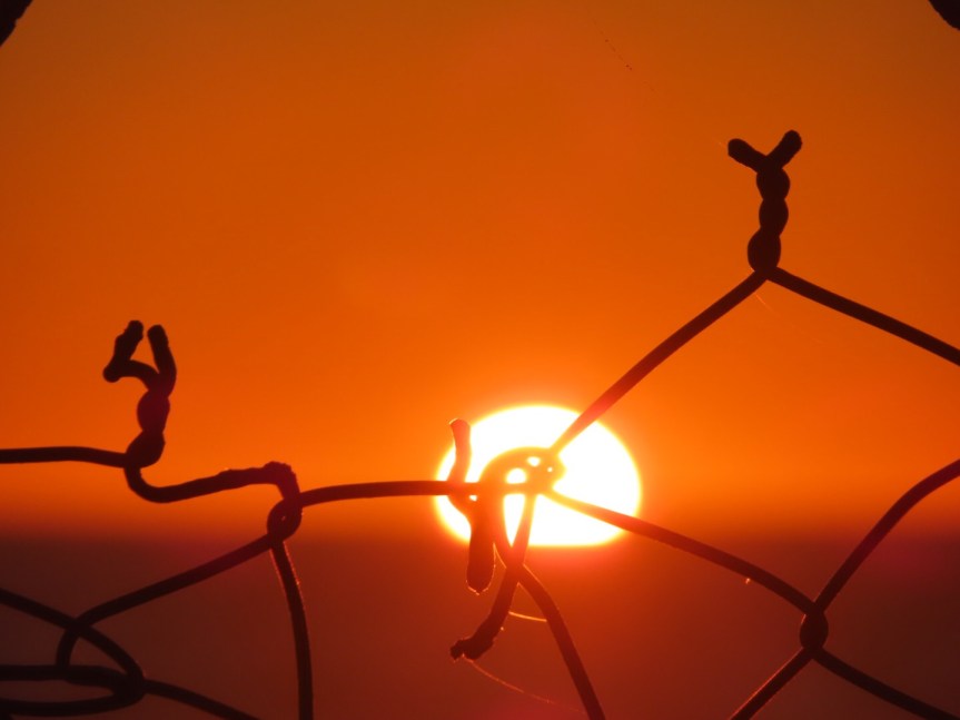 Up early again, I caught an amazing sunrise. Don’t know why I can’t manage to sleep past five these days, but that’s the way it’s been going. I had the camera in one hand and a hot mug of tea and the leash in the other. Cali wasn’t as interested in standing around waiting for the sun as I was and she’d occasionally give me a yank sloshing boiling hot liquid onto my hand. Ah, the love I’m shown.