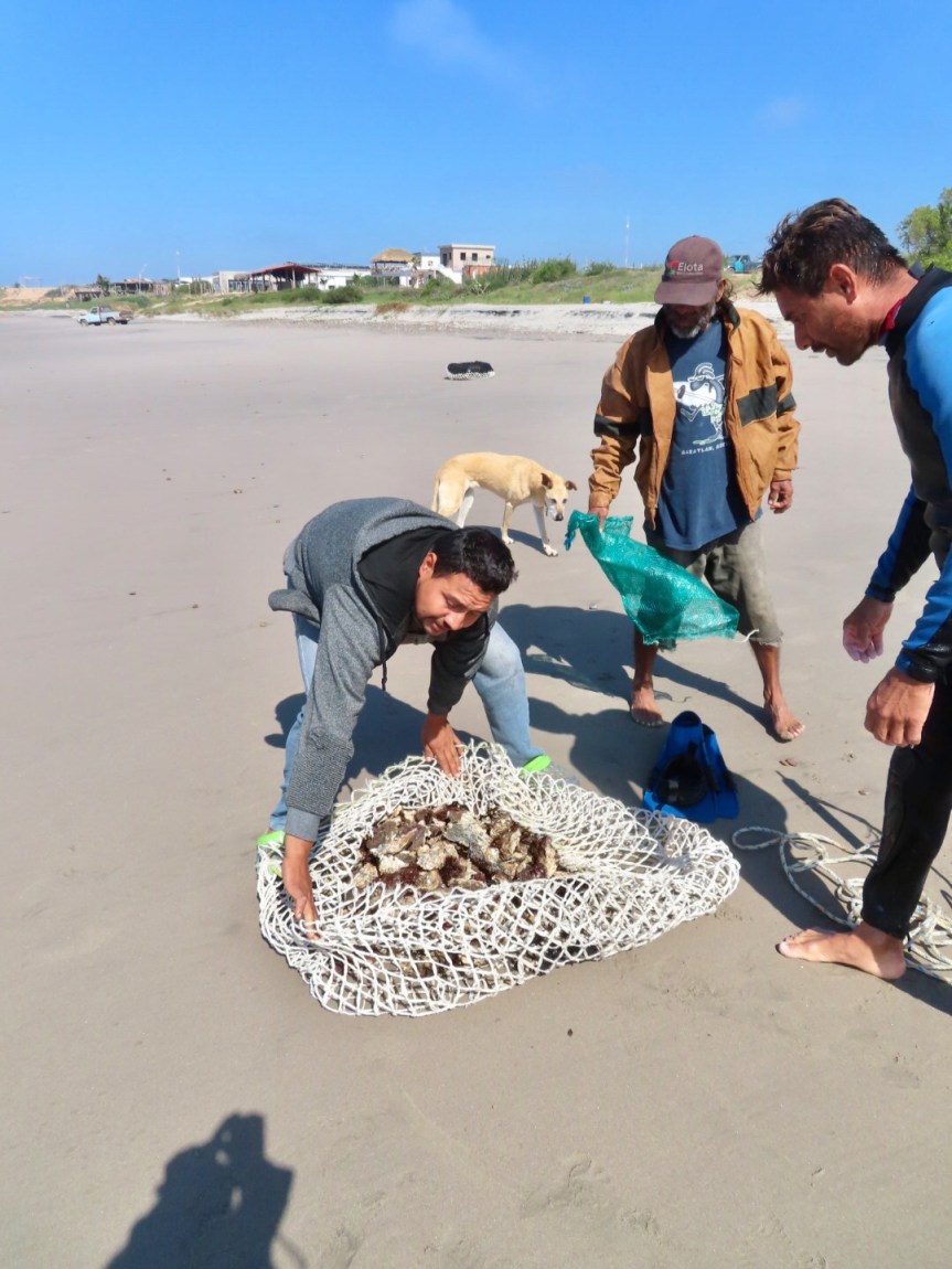 I went out with the SUP to catch some choppy waves out front. I had a good time catching several rideable little waves and working them for a ways onto the inside sand bar. For every wave I made, I had another wave that I’d get dumped by. But that’s okay, the more I keep working it, the better I’ll figure things out. The four oyster divers who were on the beach contemplating dealing with the crappy conditions decided it was good enough to get to work because they all came kicking out pushing or pulling their net lined inner tubes to collect as many oysters as they could.