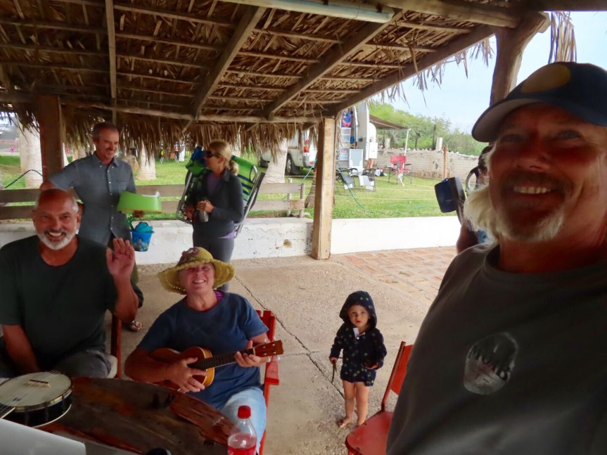 It was definitely time for a nap and some lounging. I was just about to doze off after doing some crytoquote puzzles when I hear my name being called from outside. It was Wendy and Kevin with one of those collapsible wagons filled with dogs and musical instruments. I tried to beg off and go sleep but I was lazy shamed so I rallied and we played a set of songs using some online play along ukulele sites. Kevin has a keyboard, Wendy played her ukulele and I did the background with guitar before switching to ukulele to try and learn to play that instrument as well. The three generation family that has been staying the past week was returning from the beach and saw what we were up and started singing along following the website. It was like karaoke day at Villa Celeste.