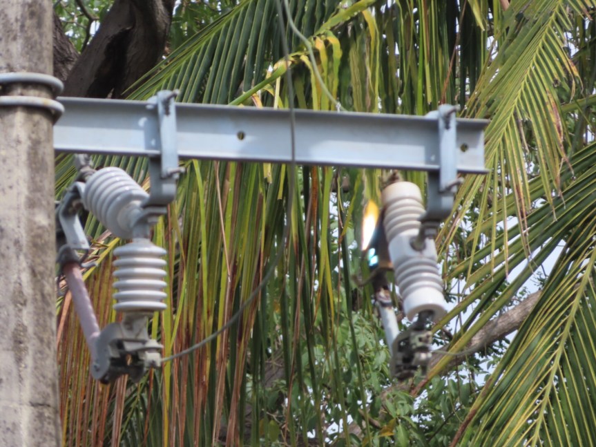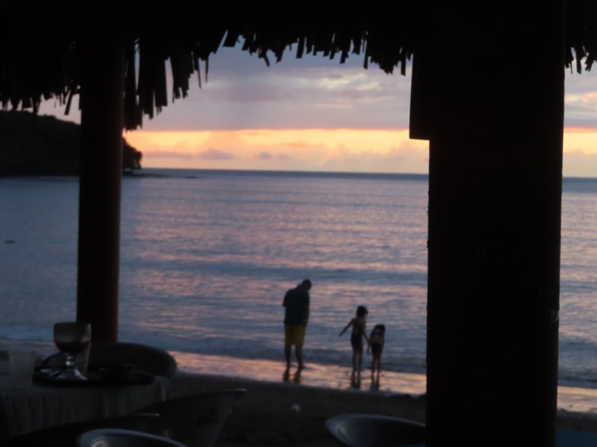 After breakfast, we took a walk out to the point to have a look at the baby waves reeling down the rocks. As we wandered the cobblestones in that direction we heard the sizzling sparking of bad electricity. We looked up and a transformer on the line was throwing flames and frying the wires. The town was pretty quiet otherwise and the few people that were out sat mostly on porches or benches in relaxed conversation. Except for the guy across from the square with karaoke machine and an eleven a.m. buzz who was crooning the latest Latin hits.