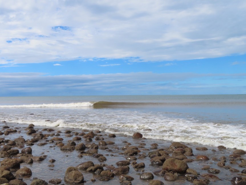 The rain had been hammering on the roof all night and showed no sign of letting up. The dog and I were in no hurry to get out in the wetness, so we slept in and enjoyed the pattering. It eased off mid morning and I talked to Andrew who was getting his dirty laundry ready to take into Santa Cruz to drop off at the lavanderia. I gathered my pile then Alan, Andrew and I walked the beach into town to get it done.