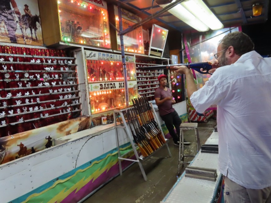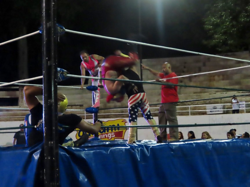 We went back and caught the wrestling matches. It was geared more towards the kids in the audience but everyone seemed to be having a good time. We moved down to plastic chairs at ringside and found ourselves part of the action during the tag team match between the Panama Tiburones and the Mexican heroes. One Panamanian took a liking to us and stopped mid match after tossing a Mexican into the buckle to come over and pose for a selfie with us. We were booed by the Mexican crowd as the Tiburon went back to work roughing up the Mexican, but as always happens, the crowd started chanting ‘si se puede’ and suddenly the battered and bruised Mexicans woke up from their concussions and started laying down a whupping on the Panamanians to wild cheers from the crowd.