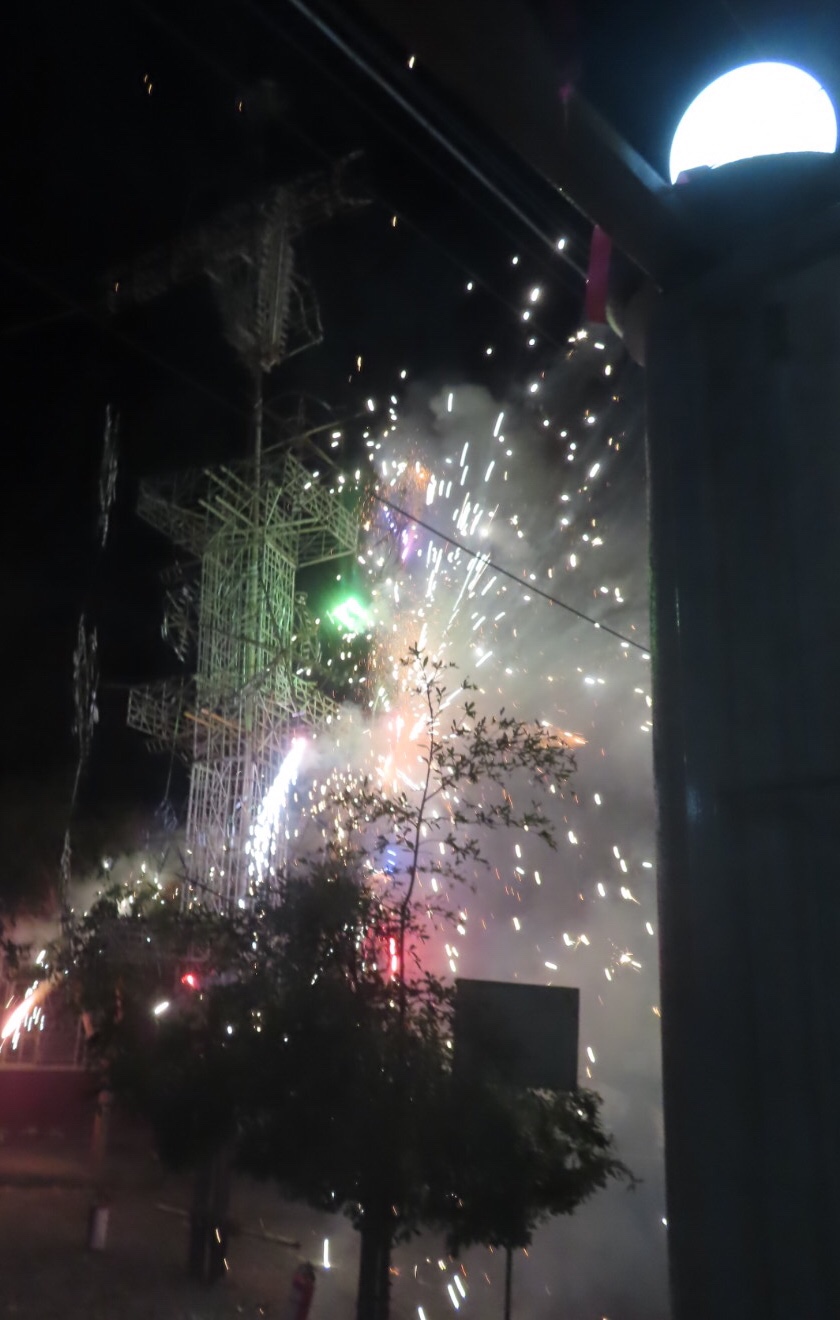 There is only so much Lucia Libre one can handle, so after the third bout we slipped out and walked to the center of town to catch the Féria. The big annual festival had been running since the fourth and was finishing up on the twelfth so this was one of the grand finale nights with a big band and fireworks. The streets were packed and bands were belting out beats at every street corner. The main band at the plaza was so unbelievably loud it rattled the brain. To top it off, another band set up in the center of the plaza and started playing their own music to blend in with the 20 person banda on the stage.