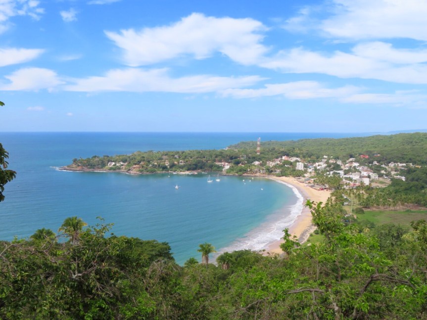 At the very top, we were on a crest with views to both north and south for great distances. The volcano’s crater was grown in with water plants but the outline was clear and it was an awesome reminder of the past volcanic origins of the area. To the south the mountains hiding Puerto Vallarta lined the coast while the tall mountains to the south marked the beginnings of the Sierra Madre. The vistas were well worth the hike.