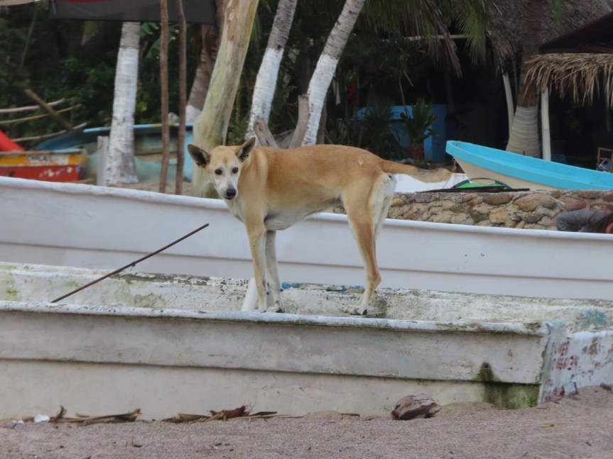 I went home and warmed up a shrimp chile relleno and savored it as musical notes went drifting over my head. Enrique’s wife truly does make the best rellenos in all of Nayarit. I’d never eaten one with shrimp before. Muy rico. I took Cali for a long walk outside of the compound down Universidad Ave. She was super sniffy and had to loiter at every bush or patch of greenery. It was a pleasant evening and nice to wander in the cool breeze after a warm day.