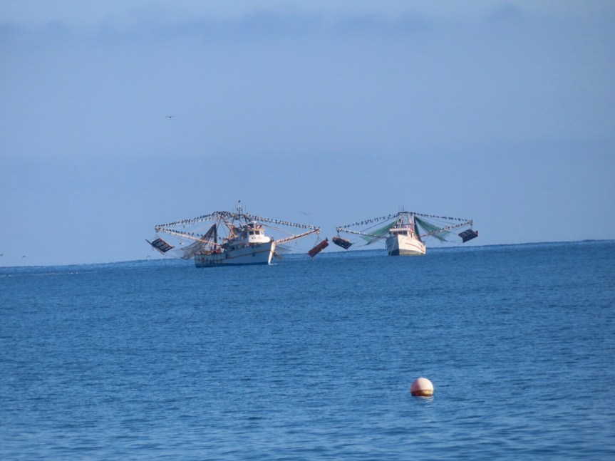 The sea was dead calm this morning. Cali and I took a chair and sat on the sand drinking our morning tea. Juan came and sat a while then said something about paddling his kayak out to the shrimp boats that sat off the far northern end of the bay. I said I was in for it and got my paddle board ready. It took me about half an hour of sitting around waiting to figure out that Juan wasn’t coming back so I paddled out on my own.