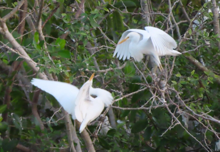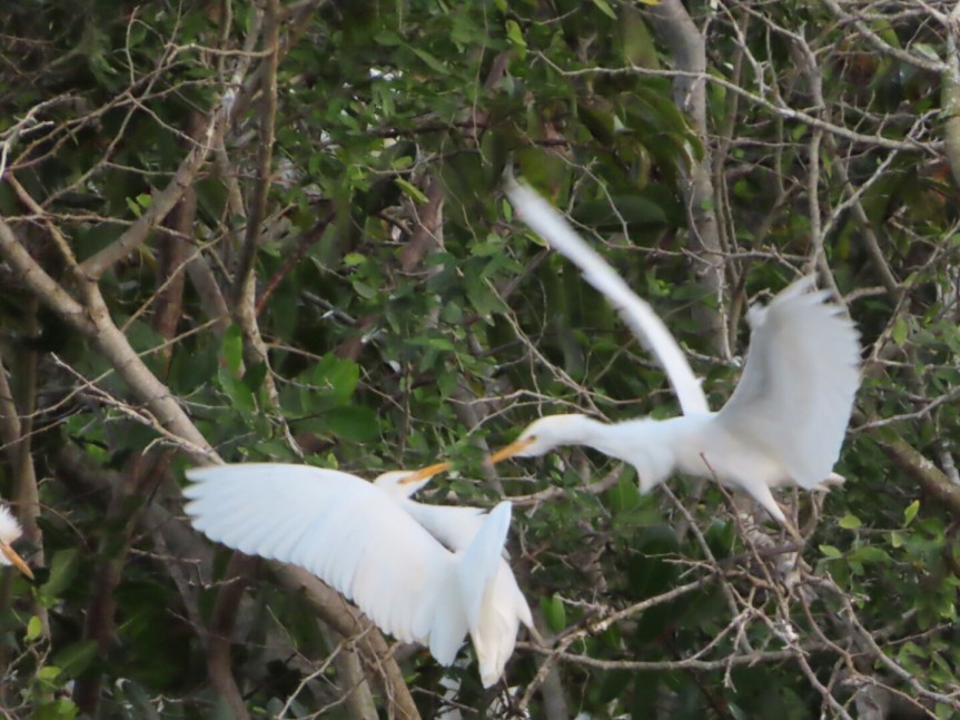 On the ride back to Paraiso, I stopped at the estero to check out the birds and turtles. A pair of egrets were sparring for dominant position in the tree. A night heron was tucking himself in among the branches and a large turtle chased off a couple of his smaller rivals.