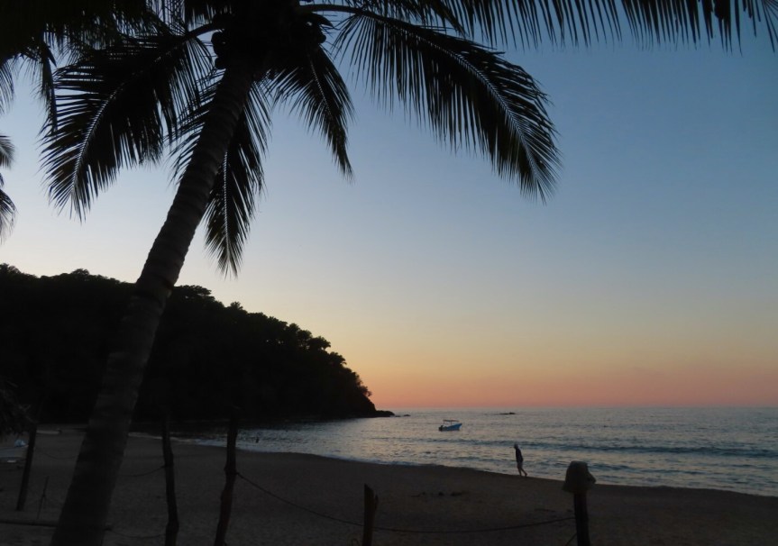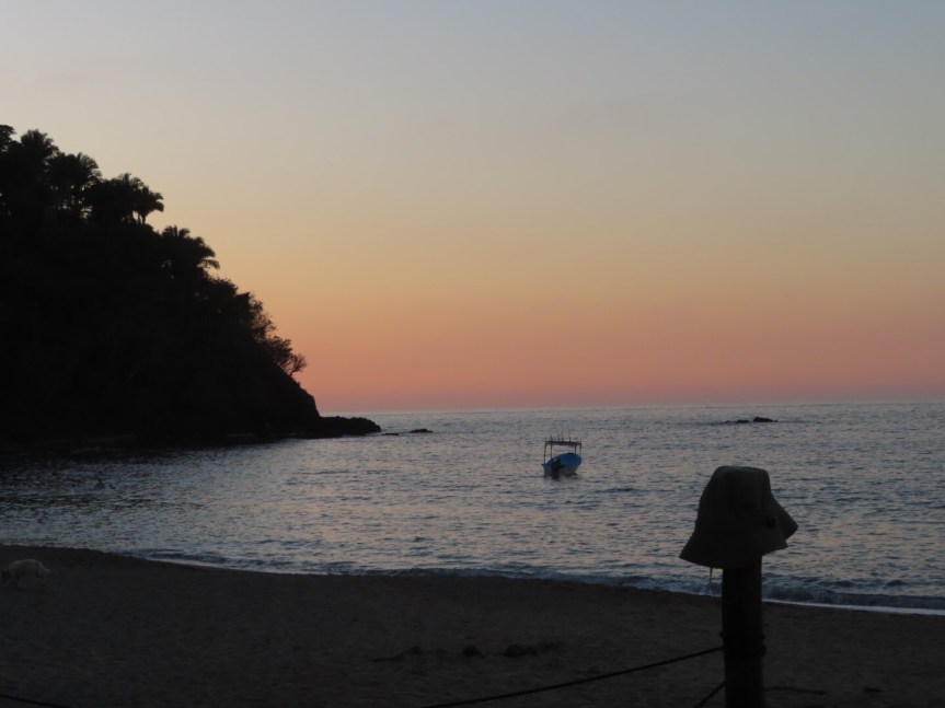 It was such a beautiful day, I just couldn’t sit around so I grabbed my snorkeling kit and swam out to the rocks off of the point where we surf. The water was four to six feet deep with a slightly more forgiving bottom than the point at Chacala but our surf zone still has a few nasty urchins waiting for the unwary. I was greeted by lots of colorful fish as I slowly kicked out to the rocks letting my fins do the work.