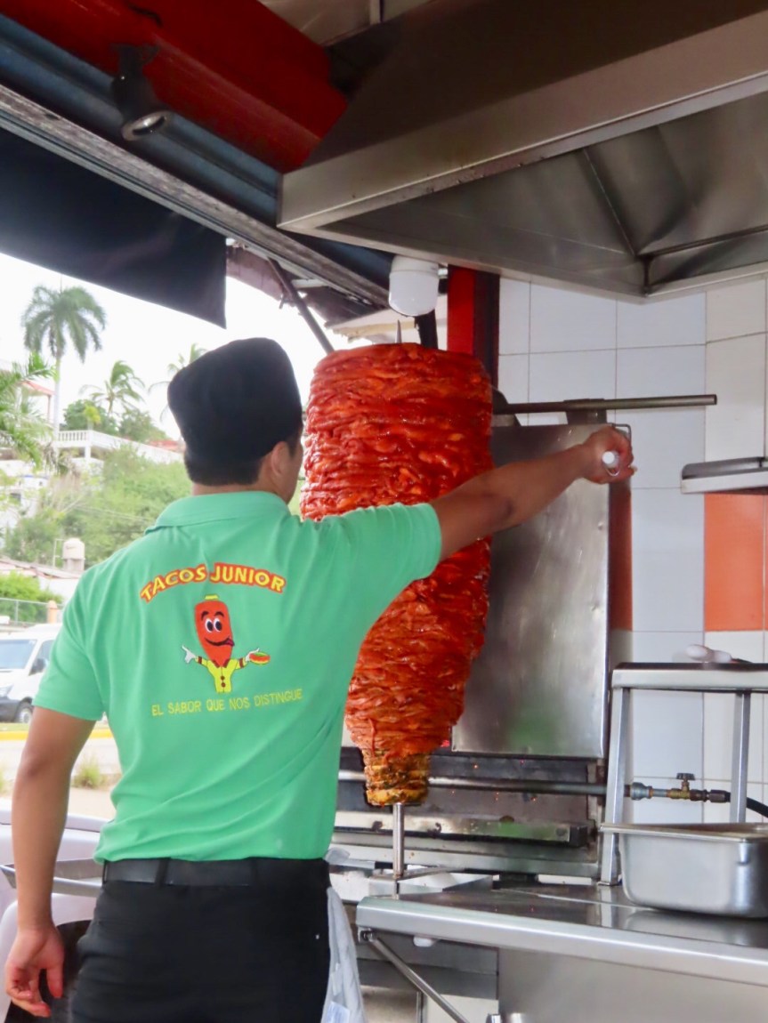 I lounged a bit afterwards, but it soon time for the 5:00 shuttle to take me into Bucerias centro. No visit to Bucerias would be complete without a visit to Tacos Junior. Julio dropped me off at door where I went in to order some tacos de pastor, their specialty. The kids were friendly and a constant stream of pedestrians on their way home kept me entertained during my meal.