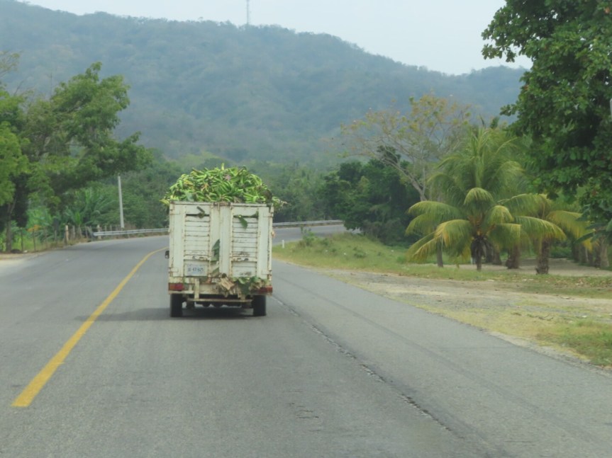I gassed up at the highway and pointed south down Mexico’s highway 200 towards Colima and Michoacan. We’re in banana country now with large plantations coating the hillsides.The road was decent for the most part, the usual pothole here and there along with the ever present topes but the construction was minimal with only two stretches of repaving going on.