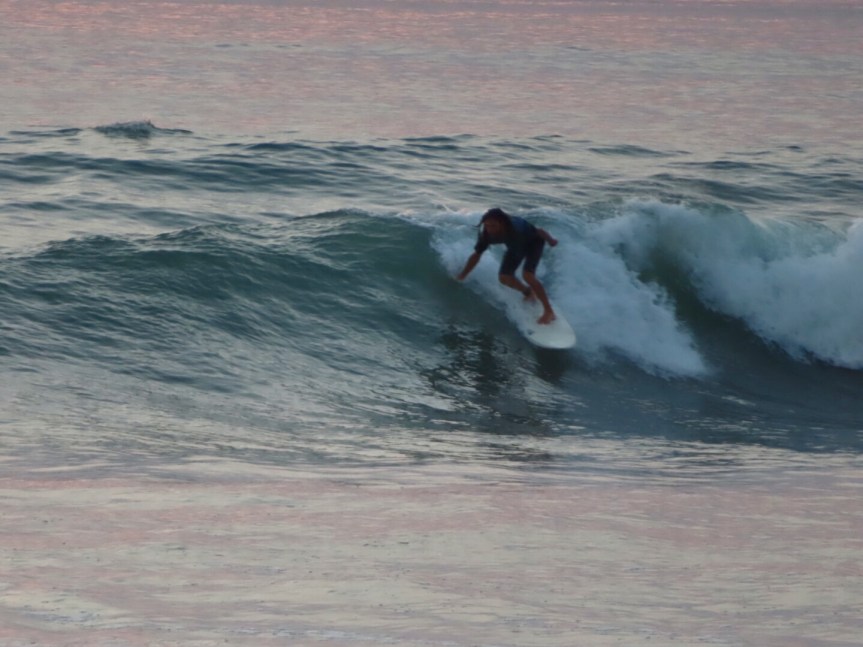I set up then paddled out and caught a few fun waves out front. There was about ten people out but I managed to nab four decent little rights. The restaurant here offered internet for 50 pesos so I paid but it still didn’t work. I spent the evening wandering around town looking for an internet connection, hoping for a way to contact PJ so she doesn’t worry that I’ve been carried away by banditos. The owner of one of the palapa restaurants at the break hooked me up to her Bluetooth and I was able to get off a text. Later, I paid another lady at the store up the hill 15 pesos for an hour and once again, it wouldn’t connect. Truly in the bush now.