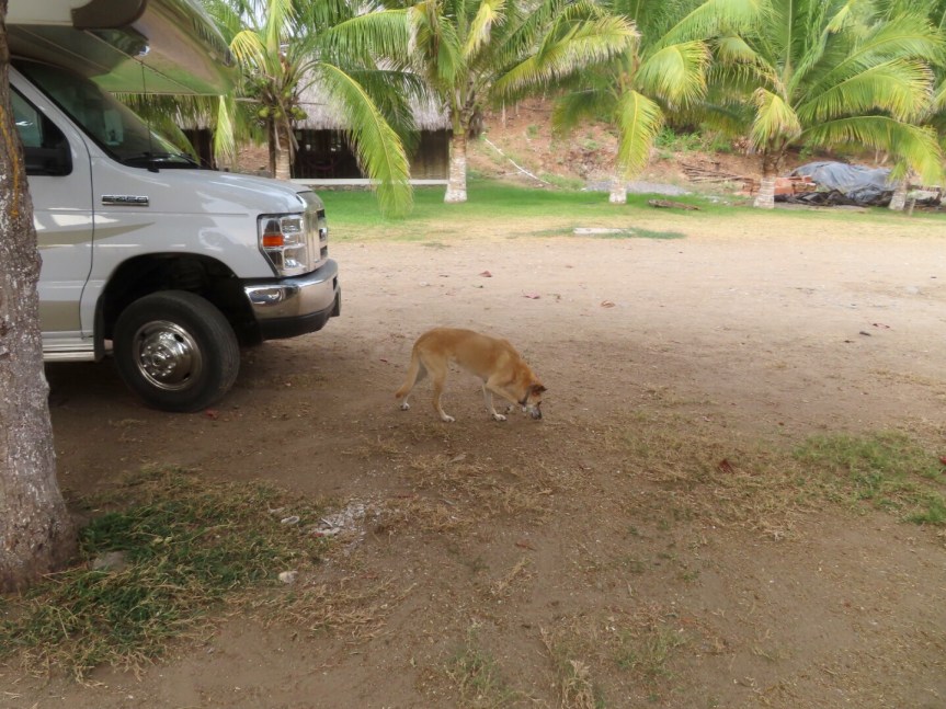 A beautiful warm day. Luckily, the RV is parked under a tree and it doesn’t get too overly hot inside. Cali refuses to hang outside for any length of time preferring to spend her days sleeping in her bed. I even moved a bed outside but she’s a stubborn old mule. There are a few electrical outlets under my palapa so I checked them out. At a paltry 95 volts, there is no way they are going to push the A/C. It is enough to charge up the batteries so I plugged in and use my 12 volt Endless Breeze fan to keep things cool inside.