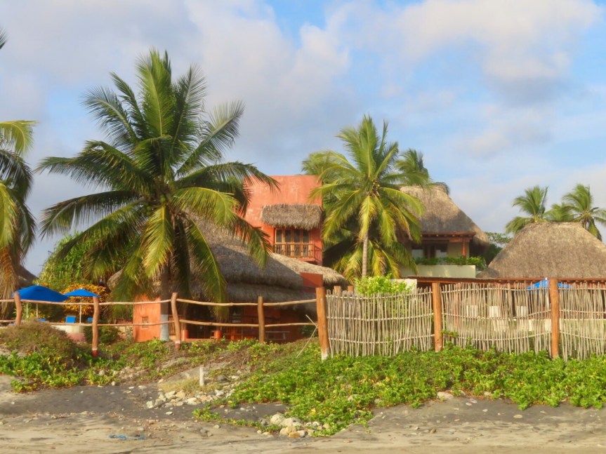 Lots of lounging for the early afternoon. Then Paco’s family showed up for a big barbecue under the palapa adjacent to Wilson. I moved over to the restaurant palapa and sat in the shade reading and enjoying the cooling breezes. The shindig finished around six in the evening then six rumbling Harleys pulled up to the restaurant with leather vested bikers from Guanajuato. They sat in the restaurant drinking and carrying on. I moved back to Wilson and sat under the awning.