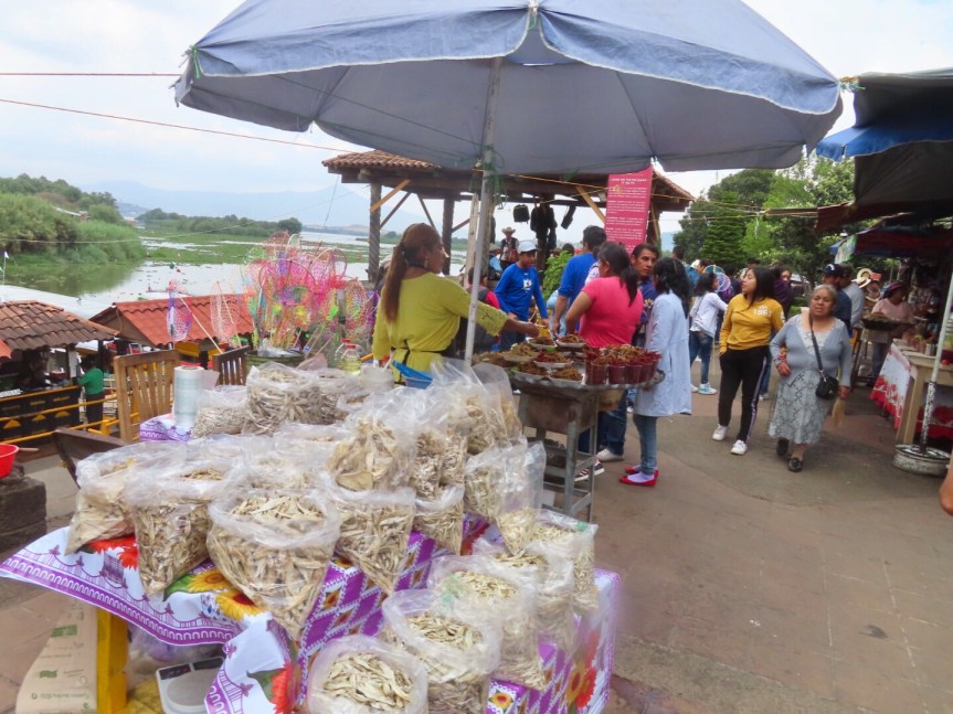 We stopped at the docks in Patzcuaro where the boats ferry passengers across to Jinitzia, the island with the giant statue of Morelos dominating the skyline. We wandered the fish stands and artisan stalls before continuing through the avocado country into Quiroga.