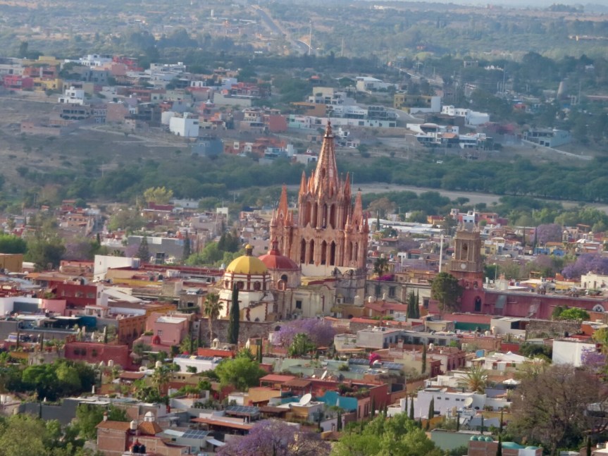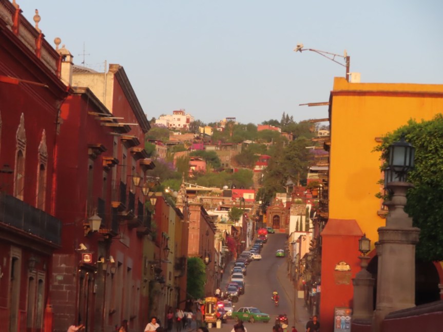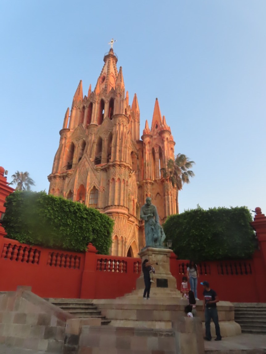 I wandered in the gardens and found a bench with a view of the basilica. San Miguel is a churchy city with a number of old stone cathedrals within a small area in the center of town. When the hour hits, one of the big basilica’s younger cousins starts just a bit too early so you hear the bells begin to sound off in the distance, then closer and closer at other parishes until they are ringing from the belfry of the cathedral right in front of you. When all of the different churches get going, it is quite the cacophony.