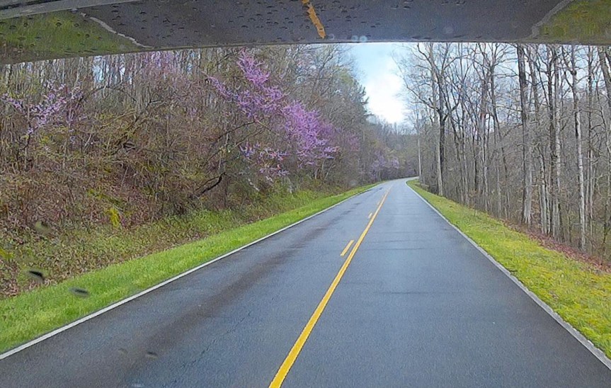 My final day on the Natchez Trace took me all the way into Nashville. As we passed through Alabama and made our way into Tennessee, the trees began to change. The latitude must be such that many of the trees here have yet to leaf out. Still a bit of leftover winter. Cali had a bad day the first day out but she is on the mend.