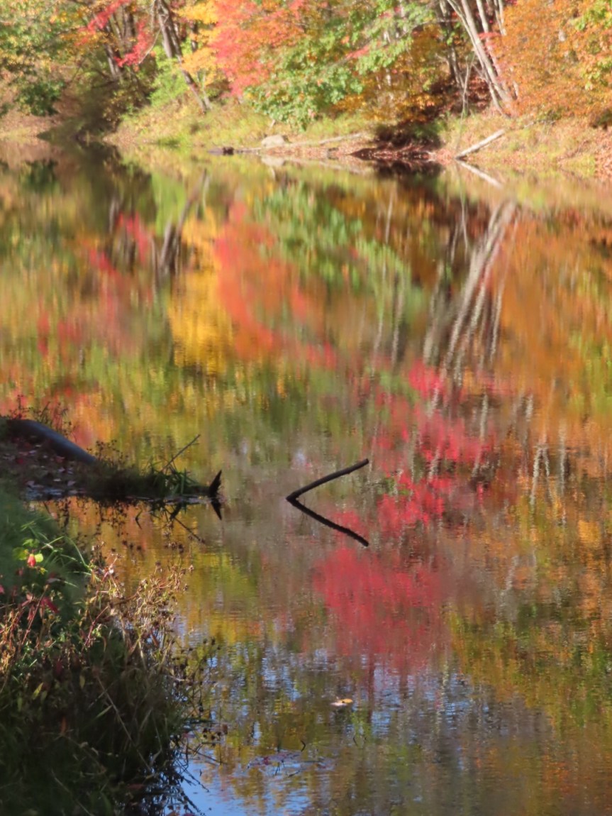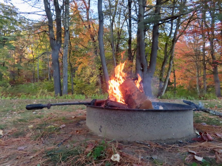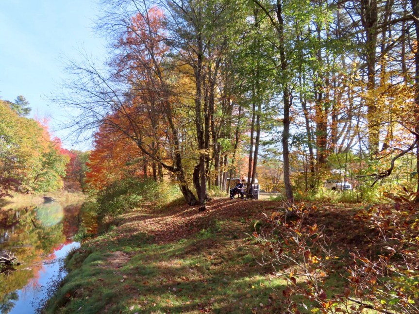 The campground on Ashuelot River turned out to be a mellow place to hang out. We decided to pony up for another day and relax along the riverbank. We sat on the leafy berm overlooking the water enjoying a quiet breakfast and nursing a scalding hot mug of tea. Flurries of orange leaves would occasionally envelop us after a particularly forceful gust of wind, slowly drifting over us like a spring snow.
