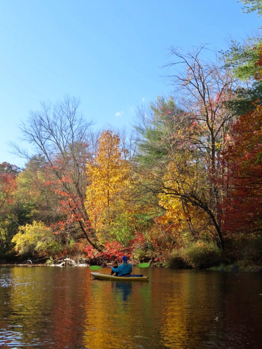 We coasted a lot on the way back, reaching out to try to catch the fluttering leaves as they swirled down onto the surface of the river. The silence was only punctuated by the intermittent cry of the birds overhead. The sun was shining and the afternoon was warm and lazy. A day well spent.