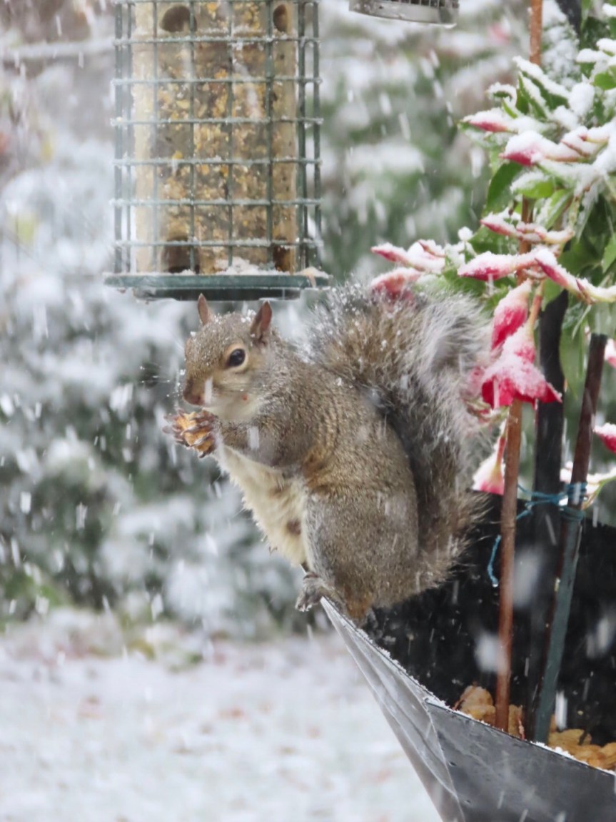 We sat most of the morning, sipping coffee while watching birds and squirrels load up on treats from the feeder doing their best to fatten up before the chill weather comes upon us for good. A beautiful winter scene but a reminder that things are starting to get cooold 🥶