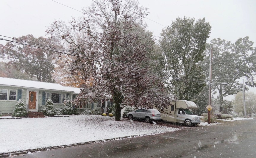 Hurricane Zeta landed on the gulf coast and before a single puddle was dry, the storm rushed up through the U.S. faster than a duck on a June bug depositing a flurry of snow on us Yankees in the northeast. PJ was as excited as a kid on Christmas and woke me up early in the morning to come see the white blanket covering the backyard.