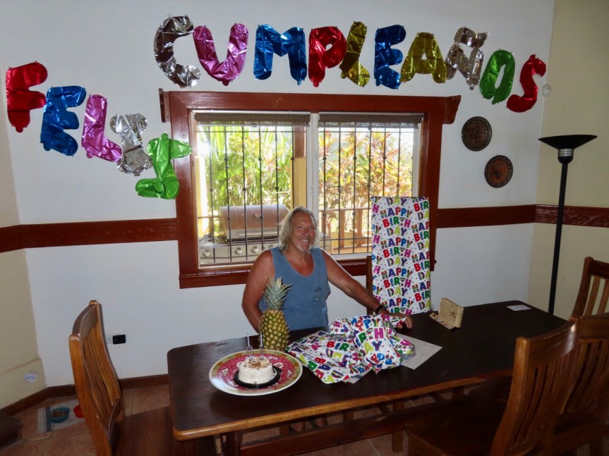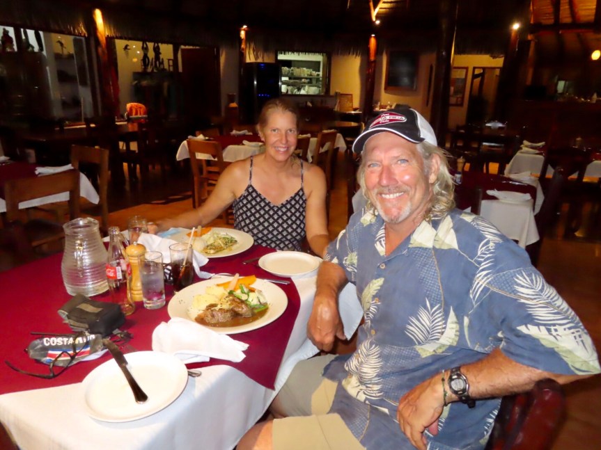 The Guacamaya Lodge has one of the best restaurants in the region and it was on the way home, so we stopped in and paid a visit for the big birthday meal. The terrace was quiet although there were a few patrons having their evening libations at the bar. Michael served us up an amazingly tasty meal and we enjoyed the view as the remainder of the sun’s afterglow faded away.