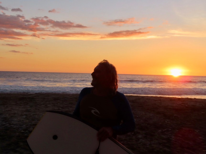 As we often do, we drove down to junqs (hoonks) for a body slammin’ sunset. The waves were extra pounding today with a strong current running south to north. It was fun getting washed all over the place catching some fast rides to the beach. Another sweet sunset with the crew in the parking lot, a mix of locals and expats that we see regularly.