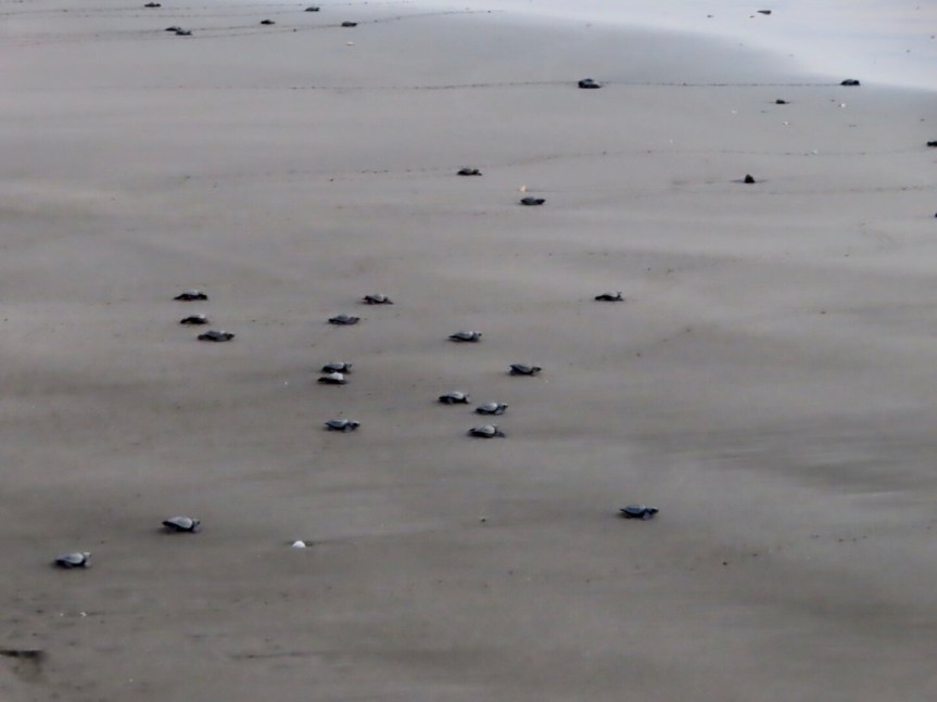 Just like monkeys, turtles will never get boring. I might get jaded about palm trees or sunsets but not these little gems. We watched them work their way to the water and head off into the ocean to whatever turtle future awaits them. The Tico volunteer was patiently answering all the questions people could come up with while keeping any overeager photographers ( like me) from getting too close.