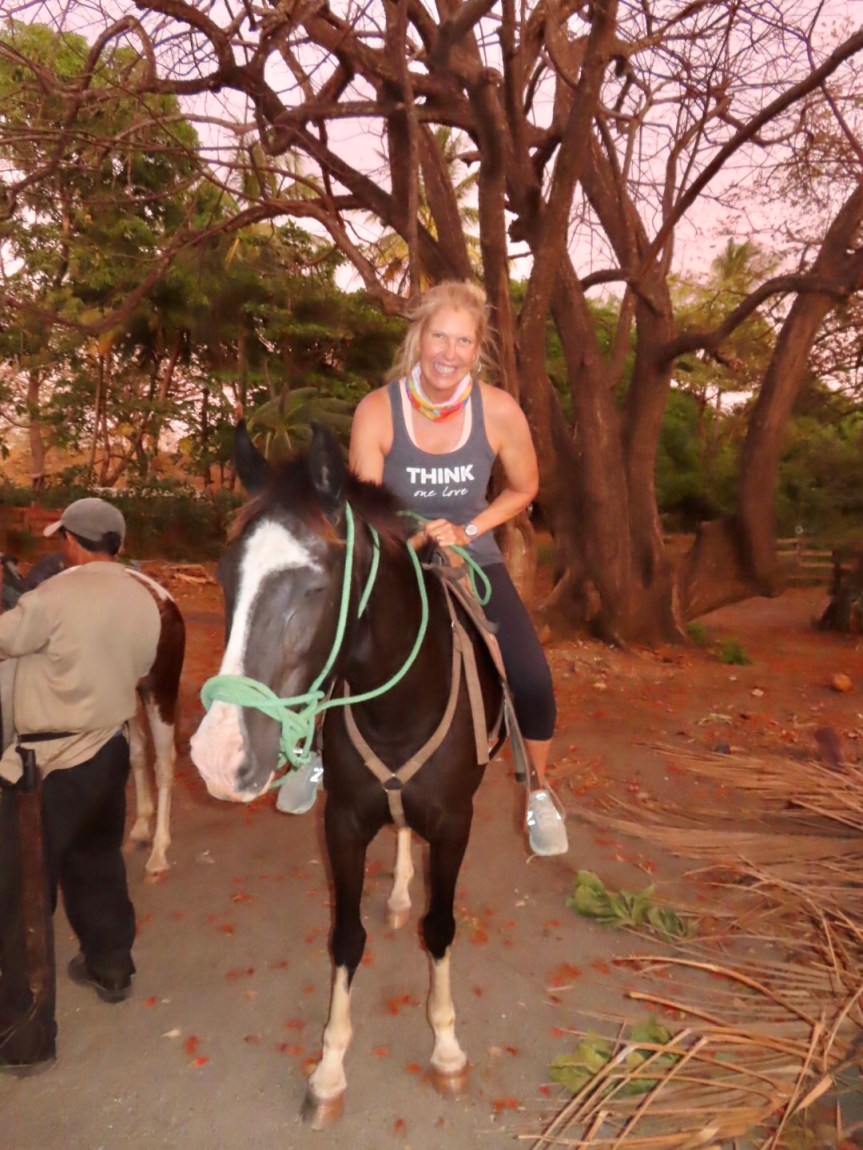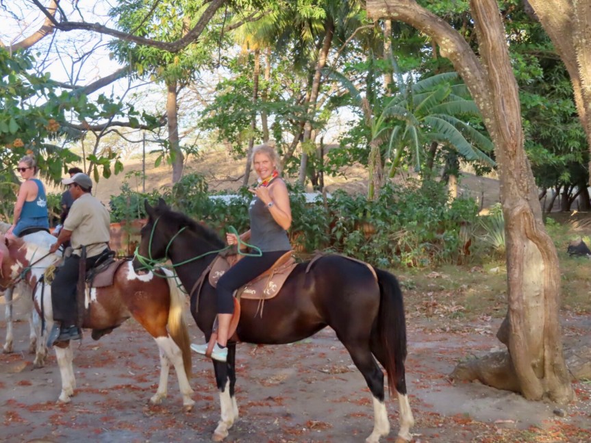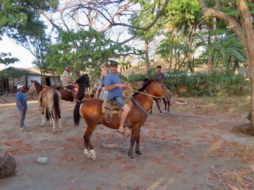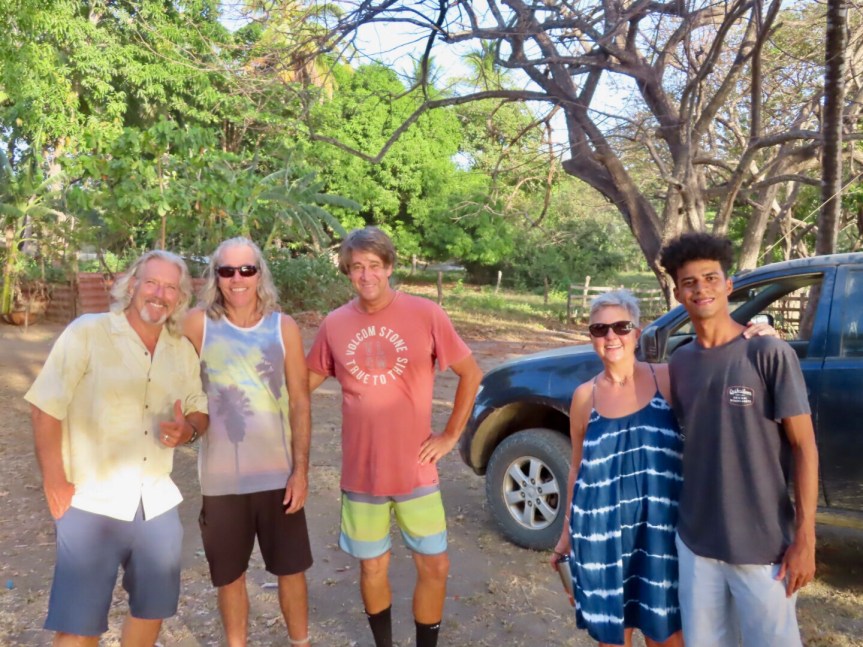 Jarrod and the crew from Rancho Playa Negra showed up and the fiesta was on. Soon the horses came clopping up and half of the gang mounted up and galloped off into the foothills. Sean has an extensive finca and the posse went on a tour through the trees and tall grass. A few rogue wild horses came with the idea of getting lucky with the rider’s mounts but the cowboys shooed them off. PJ was anxious at first but got into the ride on a dominant horse that insisted on pushing itself to the front. On a few occasions, her not so trusty steed took her down the wrong path and the boys had to call her back. She returned excited and stoked to have gotten out and challenged her nervousness about riding.