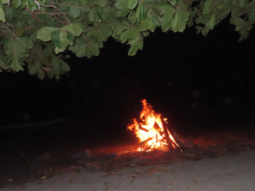 After dinner, we stepped over to the fogata and stood near the flames looking up at the amazing array of stars splashed across the tropical sky. Chuck, being the sailor among the group, was able to point out some of the constellations overhead. It was an animated group, the young Coloradans, us guys along with Bob and Val from Rhode Island. We all agreed that the unique location, good food and chill vibe made for a great way to spend a day.