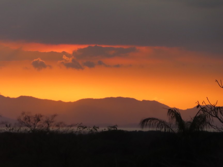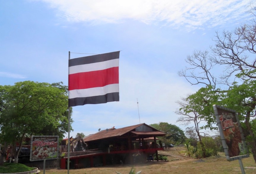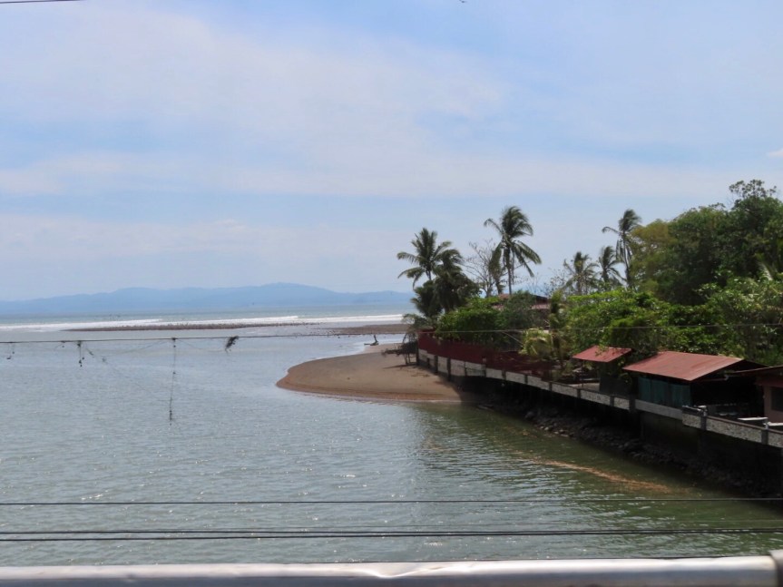 We said goodbye to our wonderful hosts in Nosara and hit the long and dusty road a little after ten. As soon as we passed through Garza, the road went to dirt. Lots of curves and tons of dust. The GPS took us along back roads that brought us out on the main road south of Nicoya, letting us avoid going through the city center. When we reached the big right hand turn by the giant cow, PJ took over driving for the rest of the trip.
