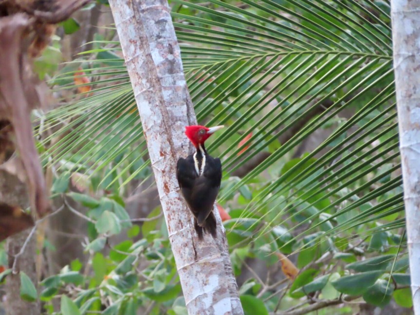 After our swim, we took a short rest then walked up the trail to the lookout that stands on a hill overlooking the ocean towards Herradura. More macaws flew by, mostly in pairs as the sun slowly set over the Pacific. Other birds were singing and making a home for themselves inside the canopy. Awesome end to a fun travel day. We went to the lodge for some dinner. Tourism is slow and we were the only people eating. Our waiter/ porter/front desk guy/cook, Douglas, told us there were only six rooms rented out of the twenty four here. The arroz con pollo was killer and the sunset continued to glow over the jungle. Ready to hike tomorrow!
