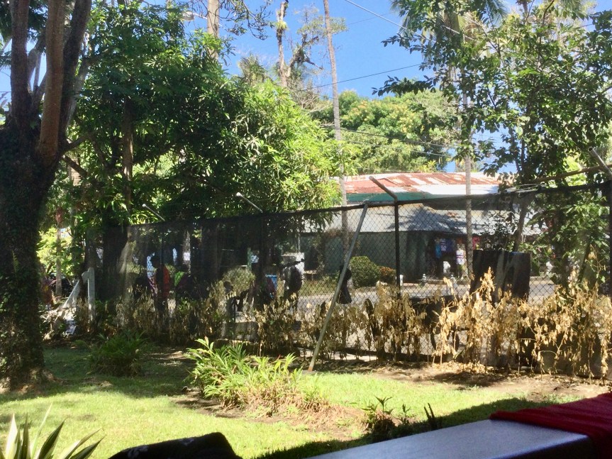 We enjoyed a total lounge day, sitting on our patio watching the world go past. We are right where the beach path to the park begins and the touts and vendors start right here also. We can watch them work their magic on the passing crowds selling trinkets, water and hustling them to park in their designated pay parking areas. Lots of shouting and animated banter. The old coconut salesman called Abuelito sits across the street keeping an eye on the action. Horses clop by, tour buses disgorge their pasty cargo and an ever present stream of park patrons go walking by on the other side of the chain link fence.