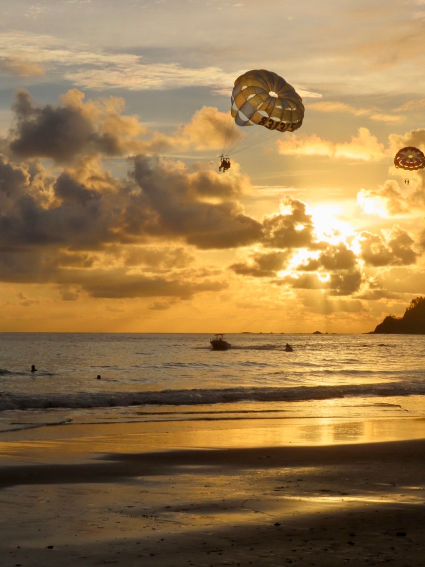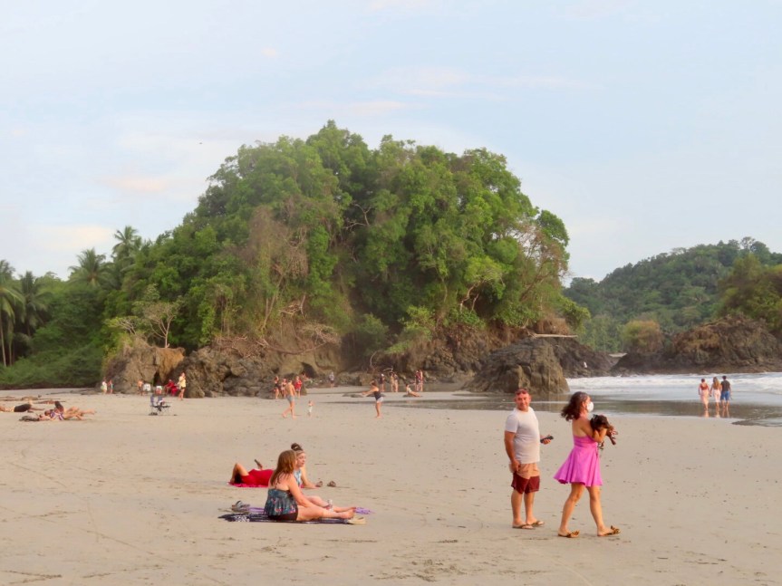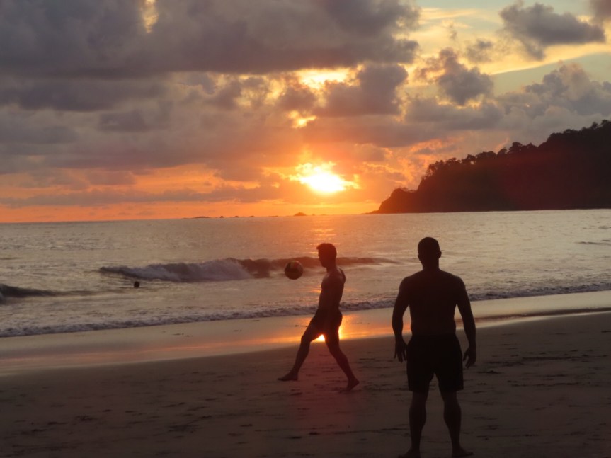 I snuck in an afternoon surf on the small high tide waves out front. The only competition was a trio of 9 or 10 year girls with their surf instructors. I think I might have taken a third place spot. I got in a short nap afterwards then it was time to hit the beach to people watch and catch another brilliant Manuel Antonio sunset.
