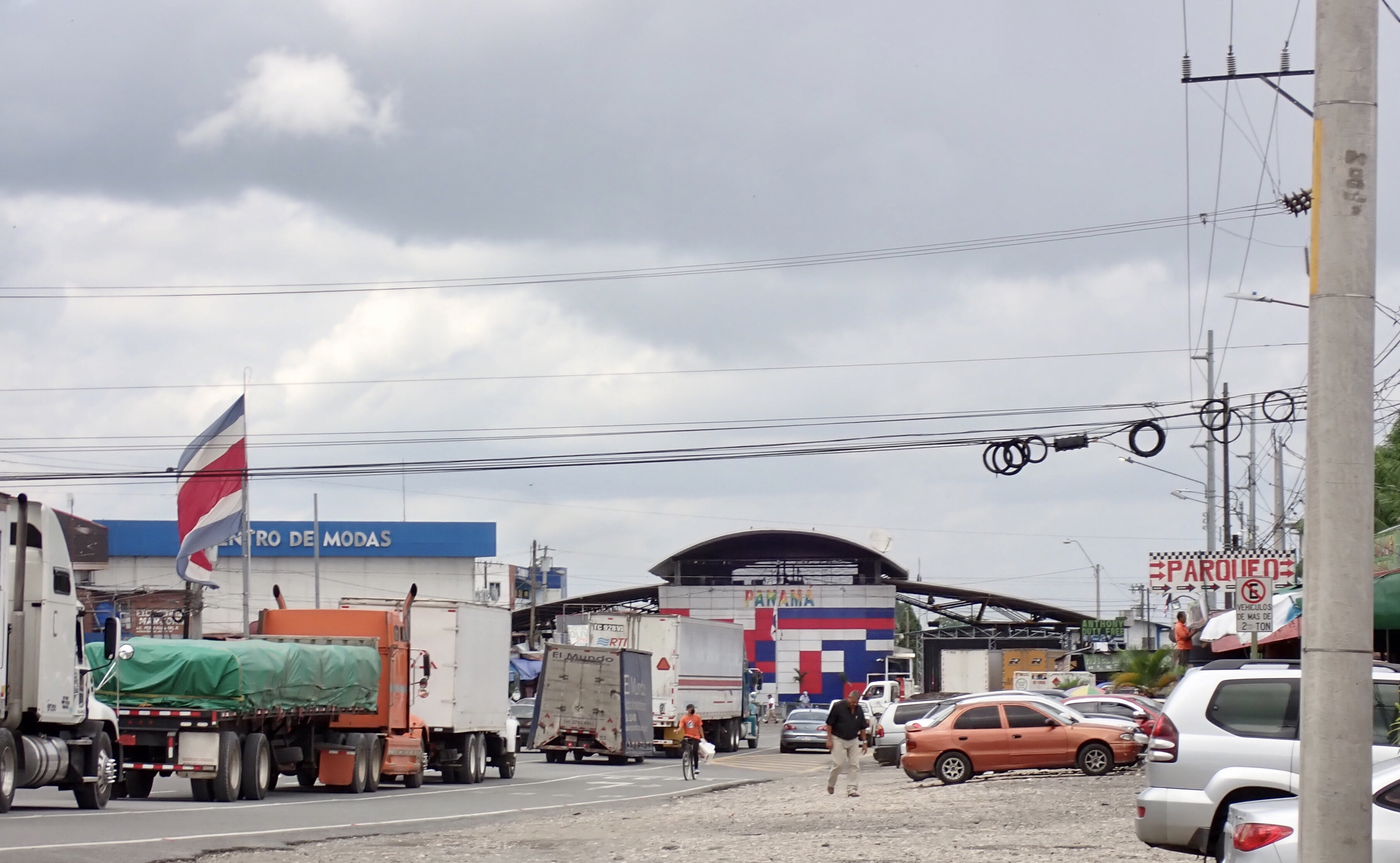 Now it was time to trudge the road of happy destiny down to the Panama side of the border. Everywhere along the 1/4 mile or so zone, trucks and cars are lined up idling, honking and belching out fumes as they try to maneuver to the front. With all of the big rigs, it’s hard to hear any of the officials through their tiny windows.