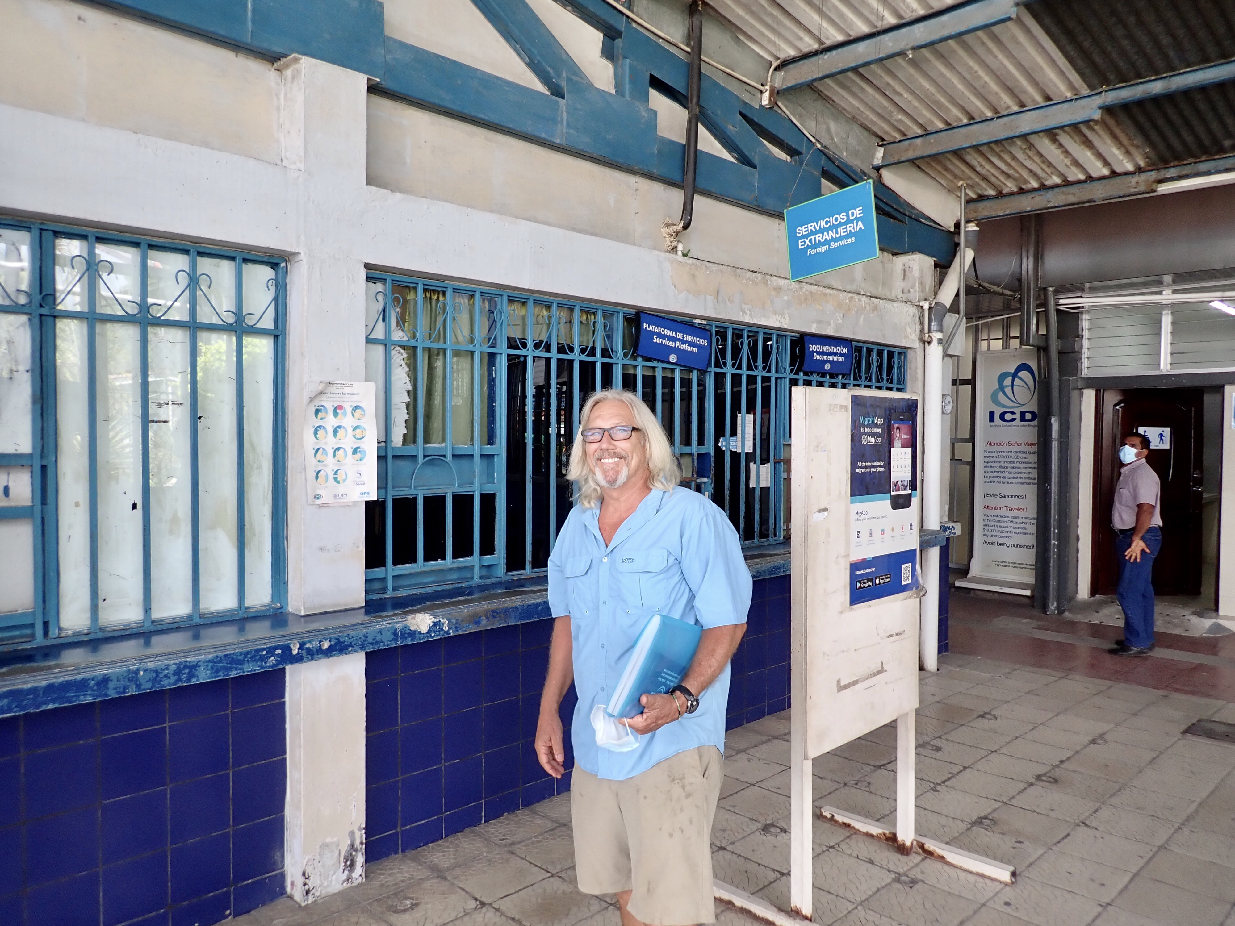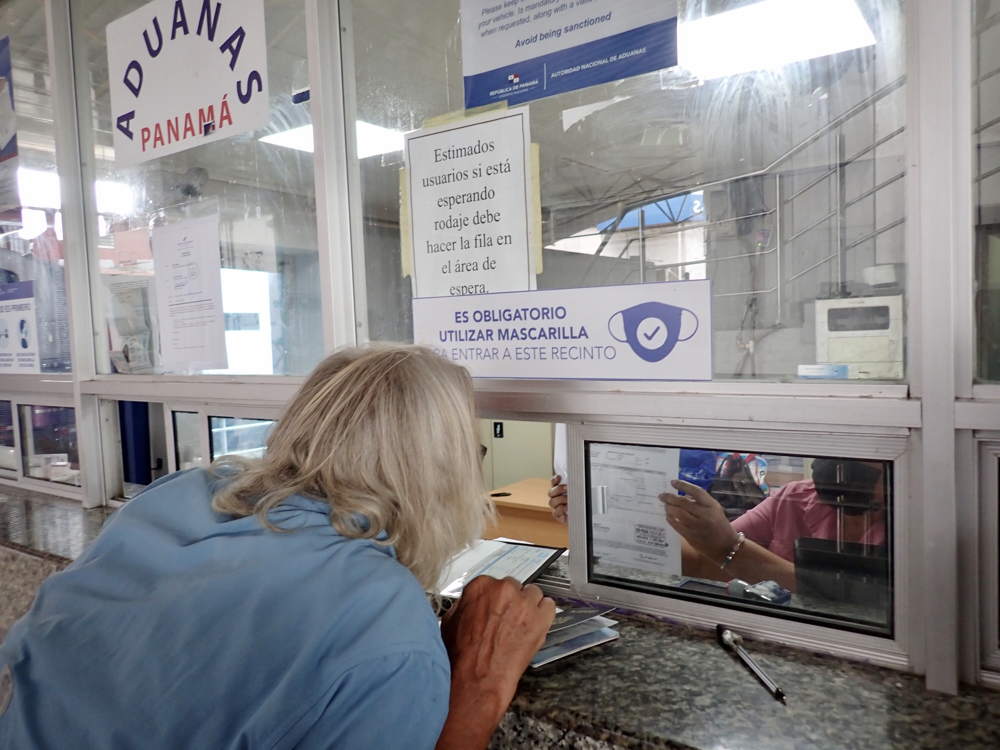 At the Panama migration office, the health official wouldn’t accept our digital covid results from Costa Rica. We had to March down to the copy center and get them to make hard copies. They printed them from photos we WhatsApped them. Then we emailed our airline itinerary and they printed that as well. We took that back and the health guy okayed them but the migration agent at the next window said we had to get the car papers first. So it was out and over to the other end of the building to a row of windows where no one appeared to be working. One guy kept wagging his finger no at anyone approaching his window. Finally a girl in the exit side waved us over and started the papers. Copies. Of course, she needed copies. So it was another run over to the copy center for copies of the registration and my passport.