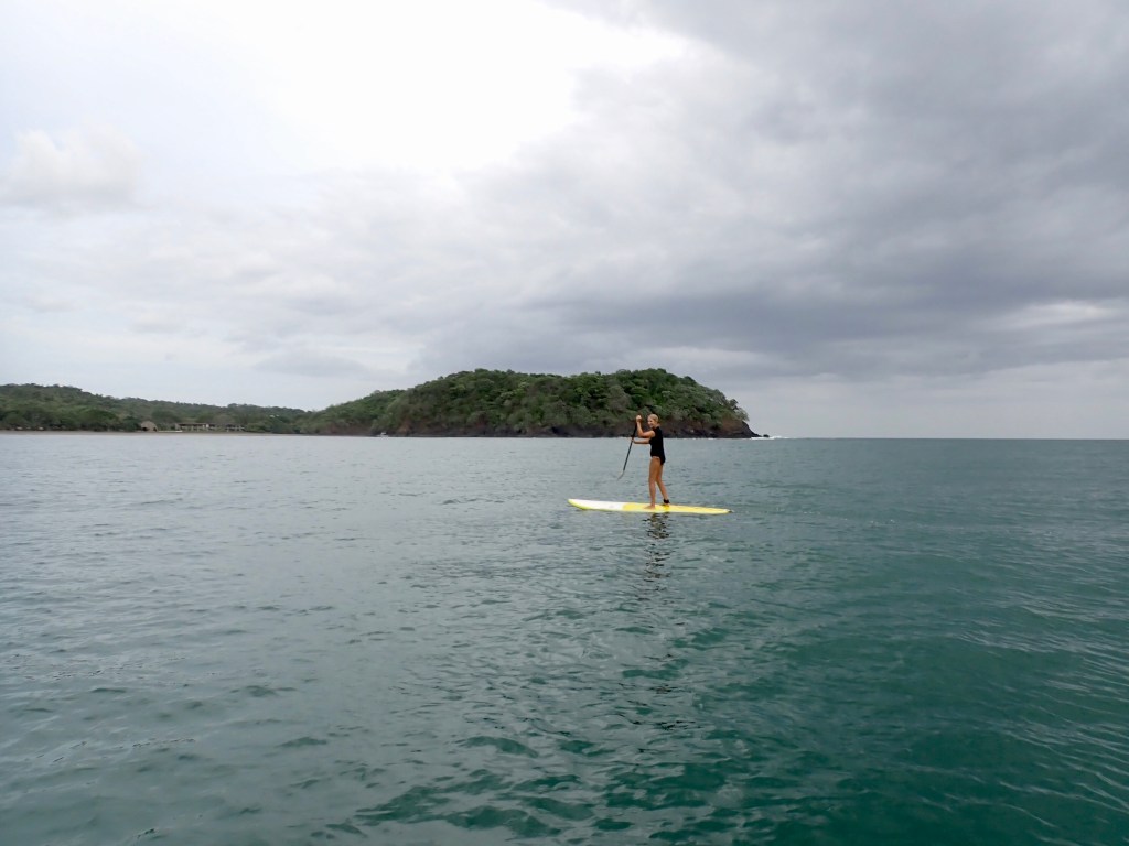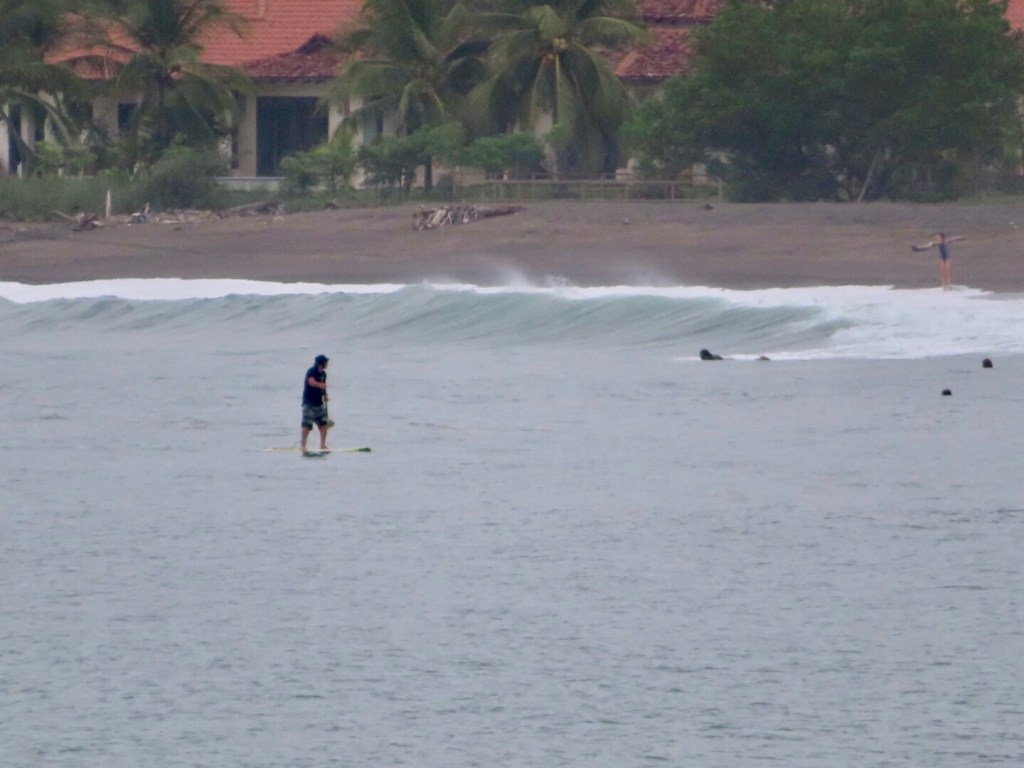 What can I say about Playa Venao? The place is amazing. We are renting the last condo next to the estuary at the far end of the crescent bay that is Venao. There is an island at the east end that blocks the swells from breaking in the first several hundred meters of the beach. From there you walk west and the wave size slowly increases until you arrive at the biggest surf spot about a half kilometer up the beach. So no matter how big the swell, you can dial up the size of waves you want by walking further from the house. Right in front it’s calm and easy to launch the paddle boards to head out and explore the bay.