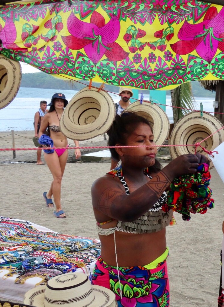 We’ve been walking around town getting a feel for Venao. Lots of yoga, massage and surf lessons. PJ found some indigenous artisans at Selina and bought a few of the colorful sarongs that the Embera Drua are known for. They are also known for their full body tattoos done with a local plant extract that lasts for a week or so before wearing off much like henna in Indian body art.