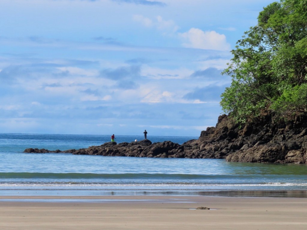 I took off to do a little beach combing of my own. I walked the entire crescent of Playa Venao to the far bluffs that mark the end of the bay. Some monkeys were howling in the trees but I couldn’t spot them through the thick canopy. Iguanas were scrambling up the rocks as I had a peek at the tide pools that sparkled along the headland.