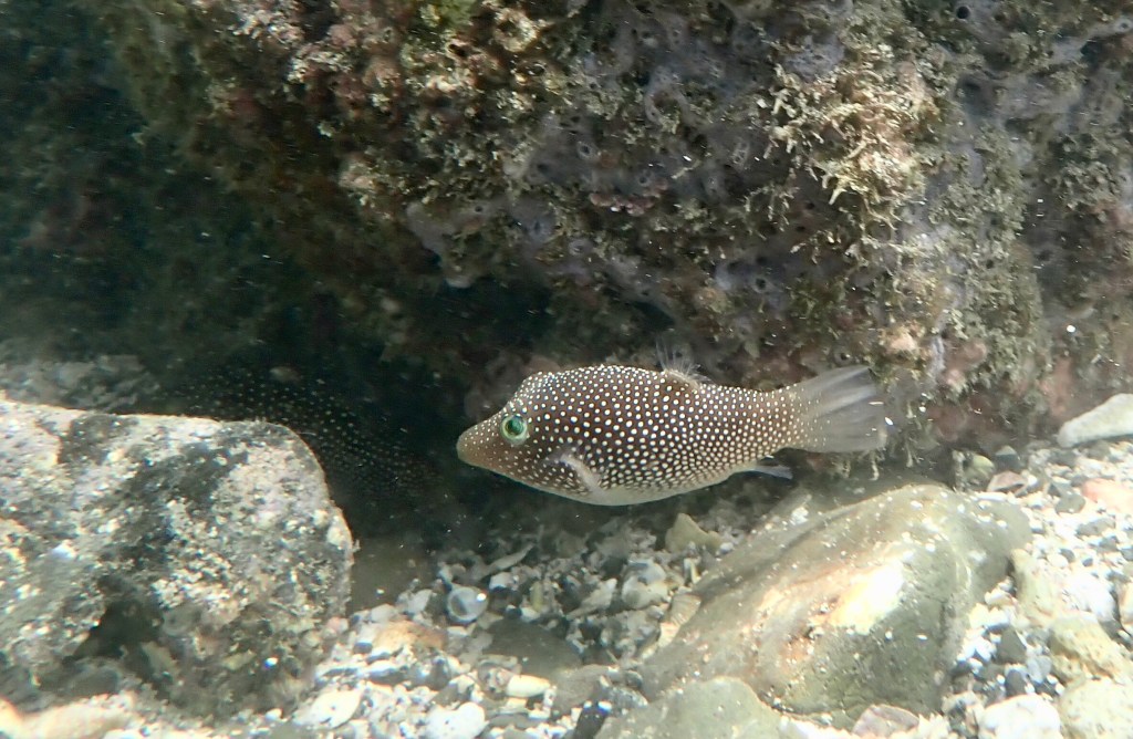 I skimmed carefully above the rocks and when I looked down I was almost on top of a venomous stone fish. There was only about two feet of water so I did the wide handed swim stroke to get out of there.