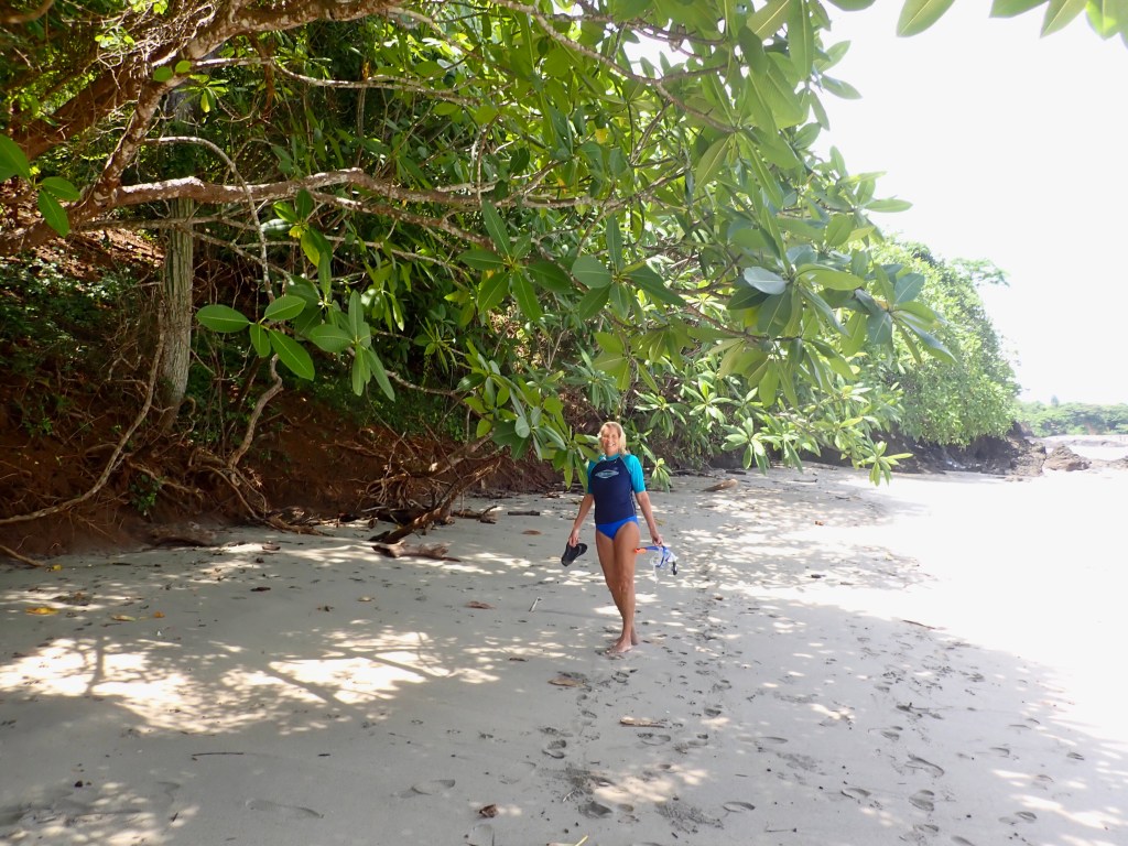 As we finished our meal, a troop of howlers came to visit in the tree over the kitchen area. I suspect they find the stray banana or two around the back of the cookhouse. We played a while with the chihuahua puppies before heading to the room to gather our snorkeling gear.